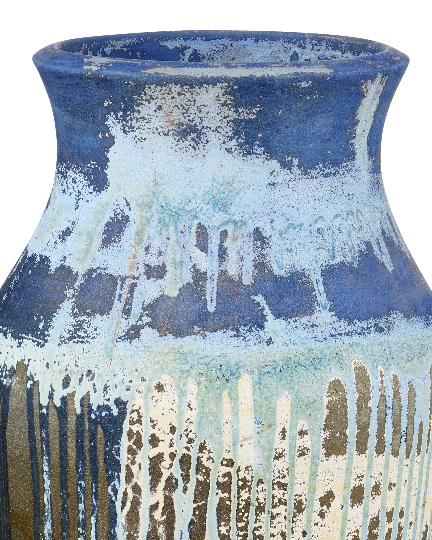 Description: Bring the garden indoors (or enhance outdoor spaces) with the Capizzi Blue Drip Urn and its strong Mediterranean vibe. Inspired by classic shapes that have been staples in Italian gardens for centuries, the blue garden urn has pitting in its terracotta surface to create the feel that it, too, has been tucked away in the landscape for ions. This is a large blue garden vessel with no drain hole.