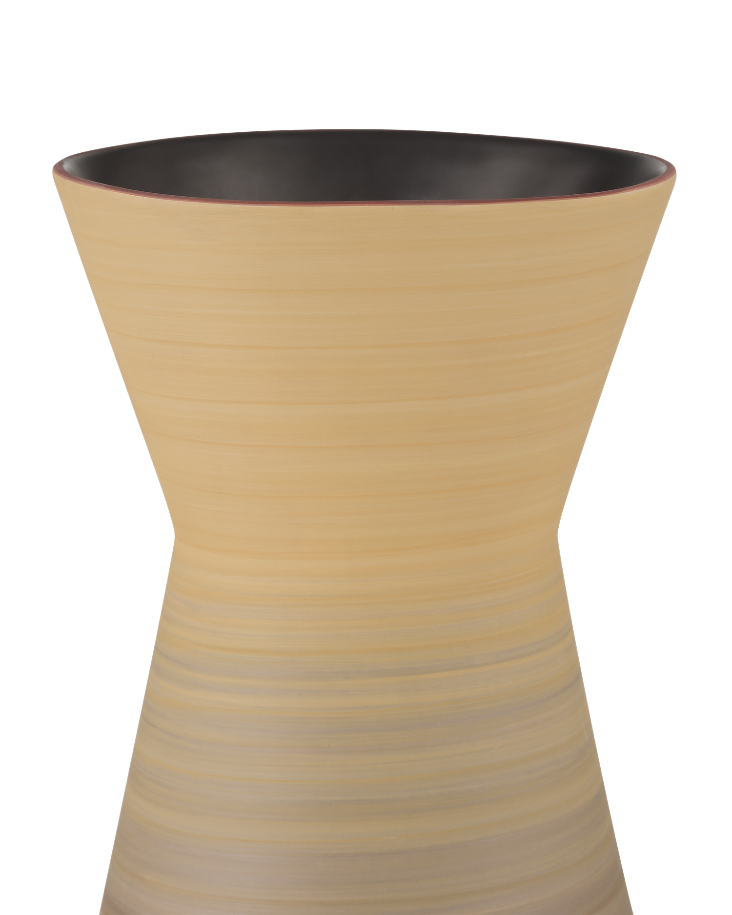 Description: The Happy 80s Red & Yellow Vase Set is a throwback to the decade when bold, vibrant, and eclectic ruled the stylistic spectrum—from interior design to fashion. Made of porcelain, the glazes on the exteriors of these vessels will vary because they are applied while the vases are spinning. This brings the two works of art a textural feel. The insides of the vases are covered in a black glaze and the shapes of the vases reflect the nuances of the decade after which they are named.
