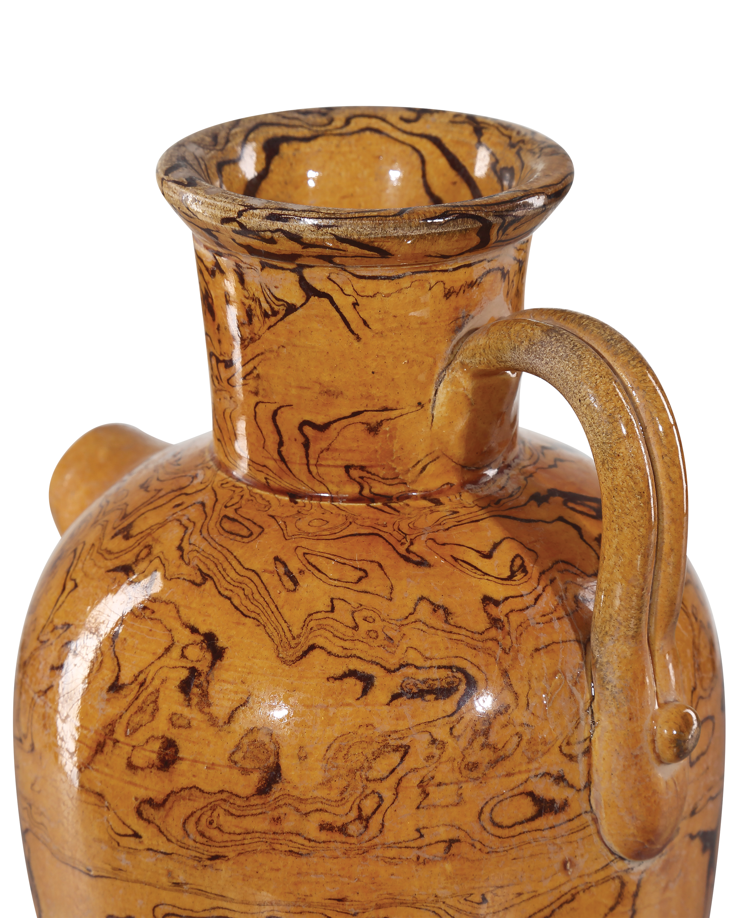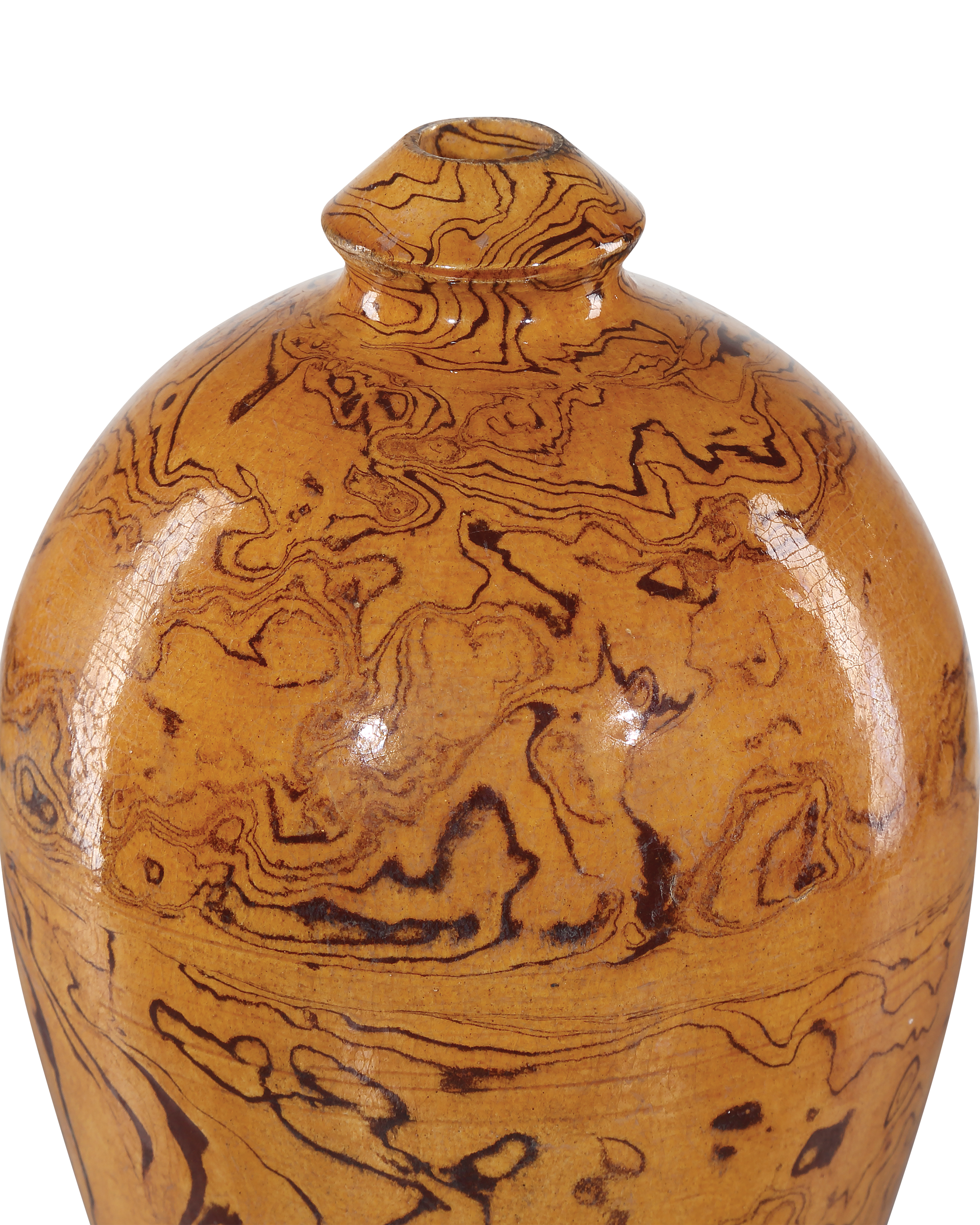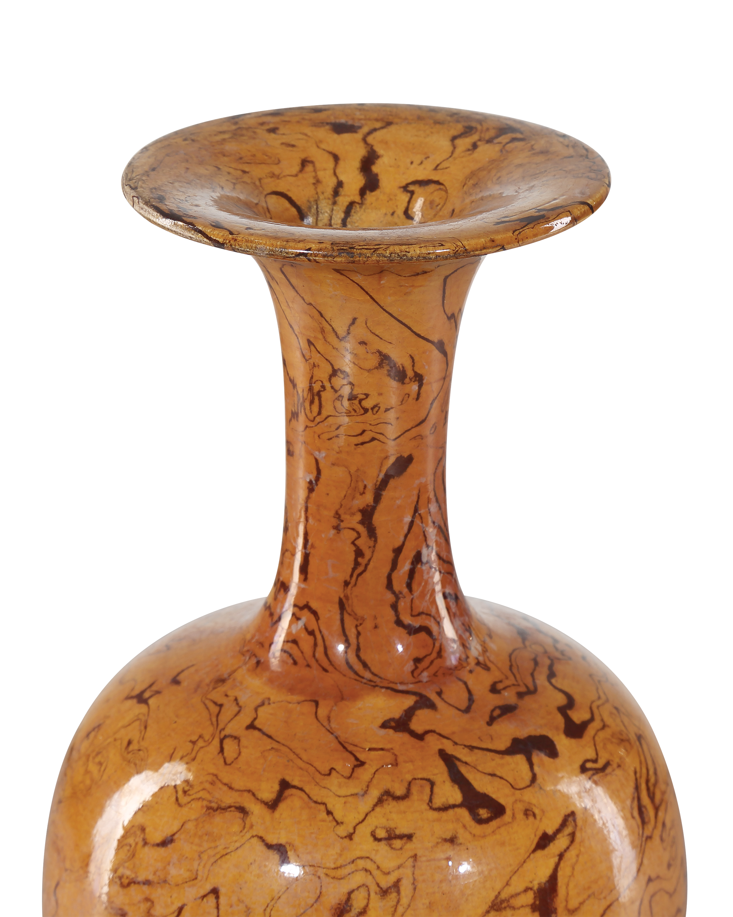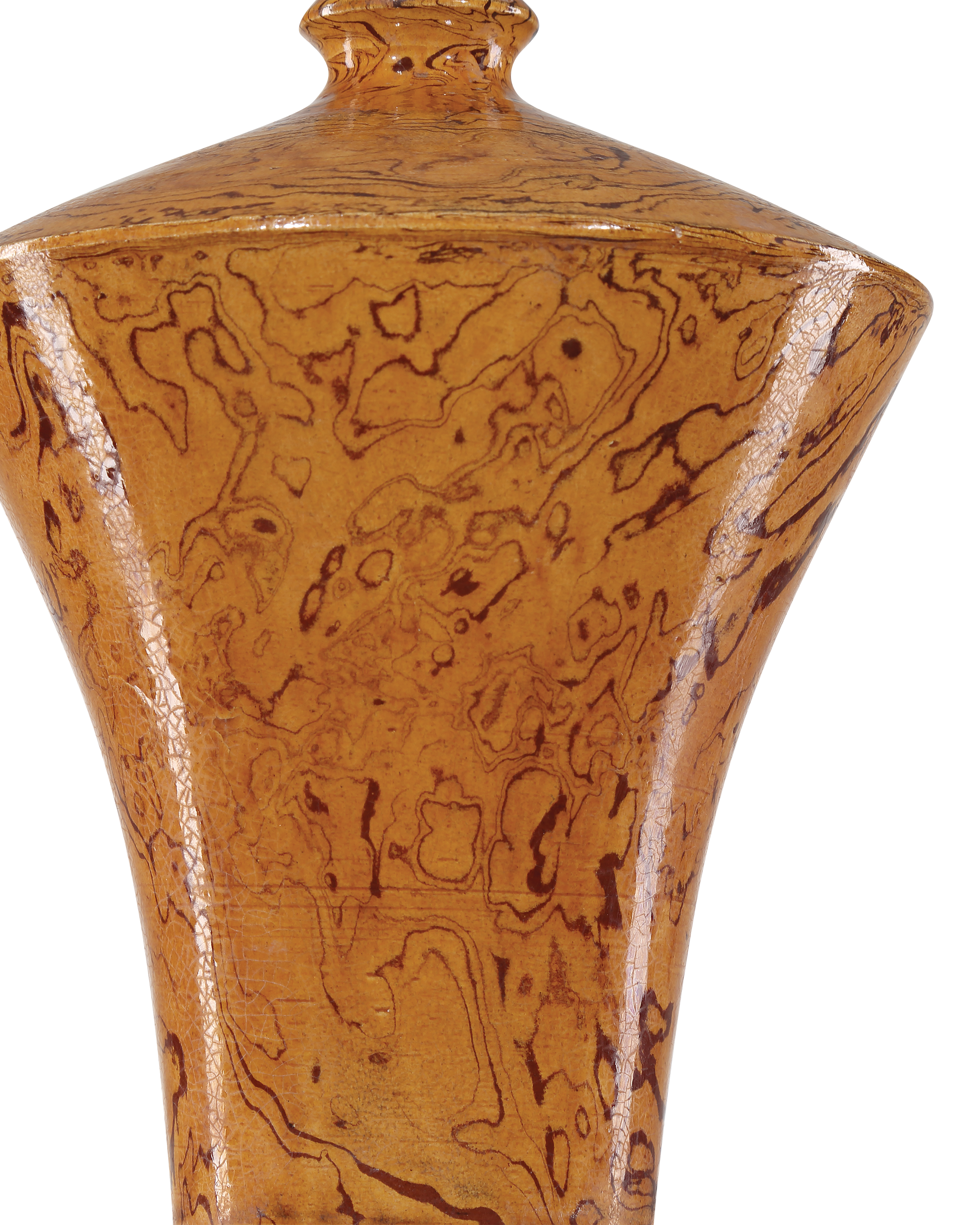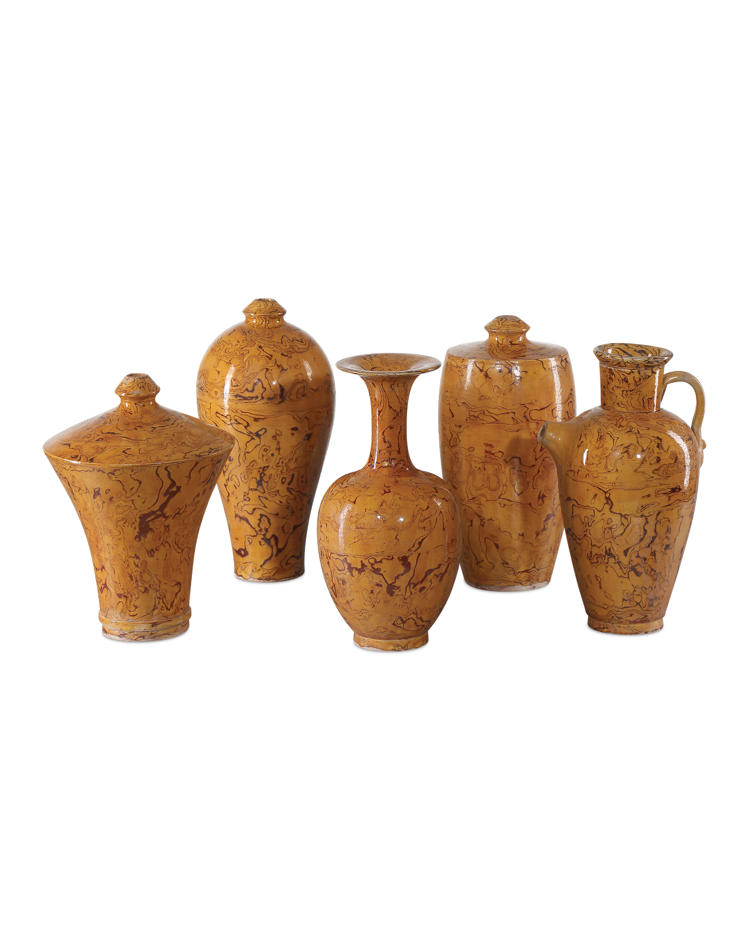 Description: The Romulus Vase Set includes five hand-thrown vases made of porcelain and covered with an extraordinarily fine texture that resembles "Terre Melée," which is the art of combining stamped clays with colored oxides. The glazing is called an imperial light brown, and each of these vessels looks very much as if it could be an archeological Greek lacrimal vase. Because these are hand-glazed, each piece will vary slightly.