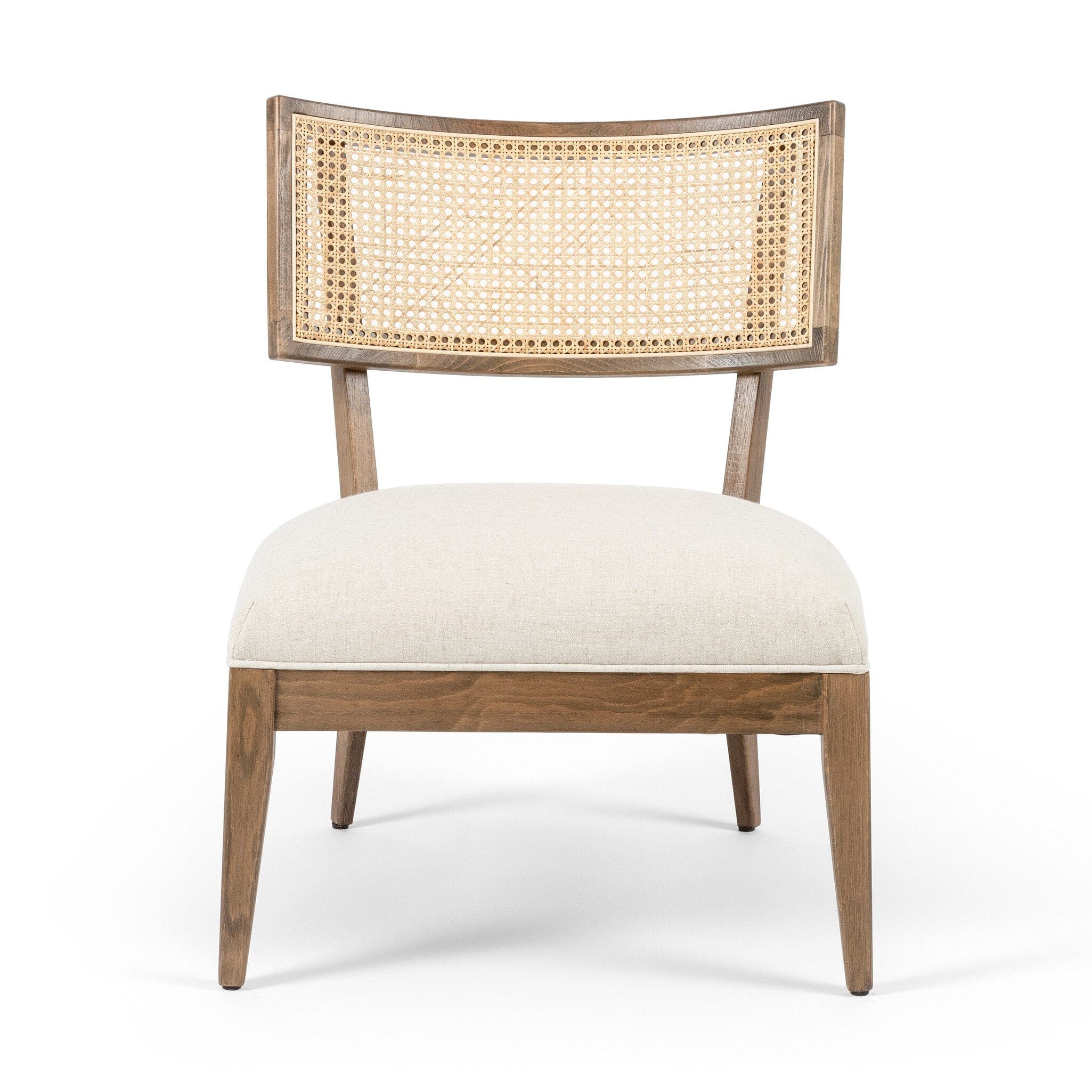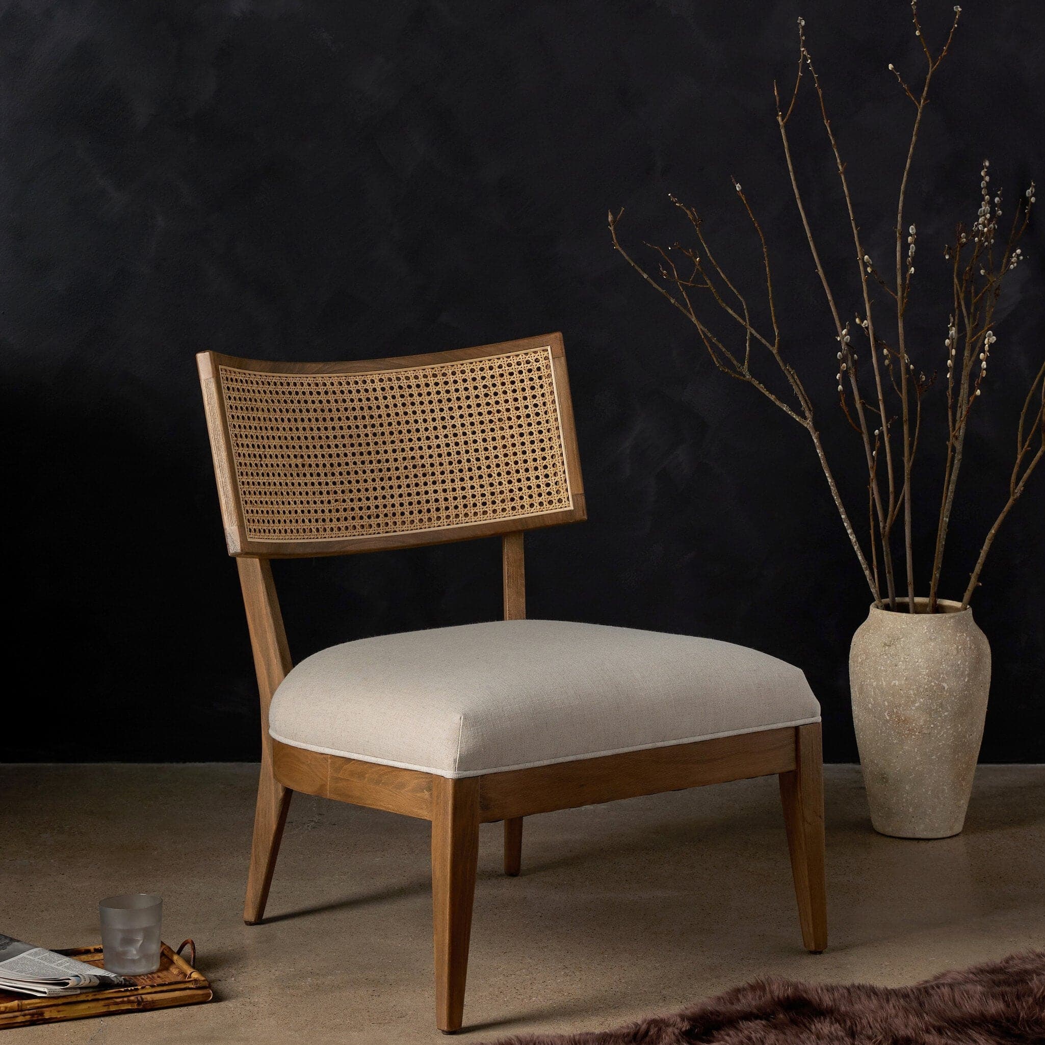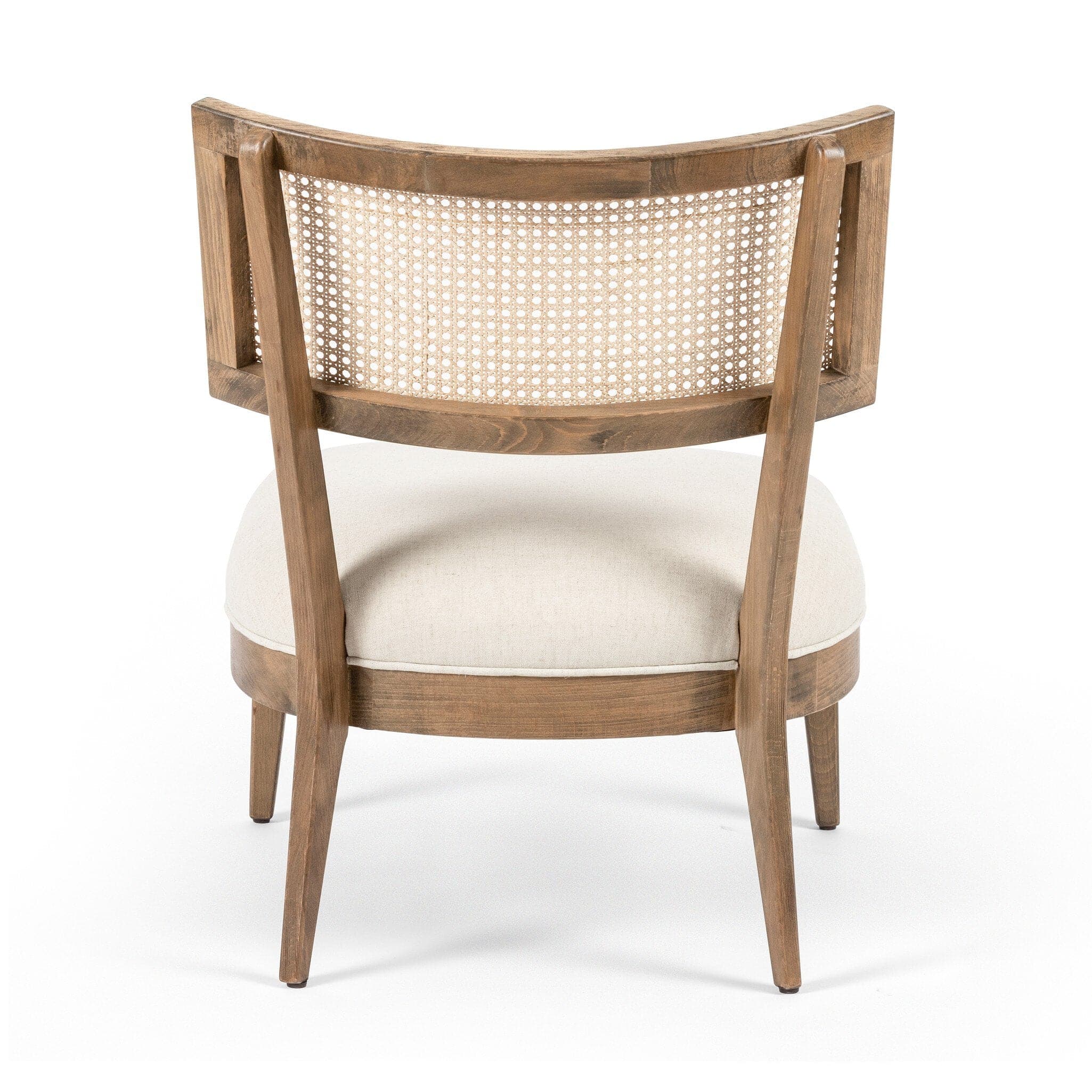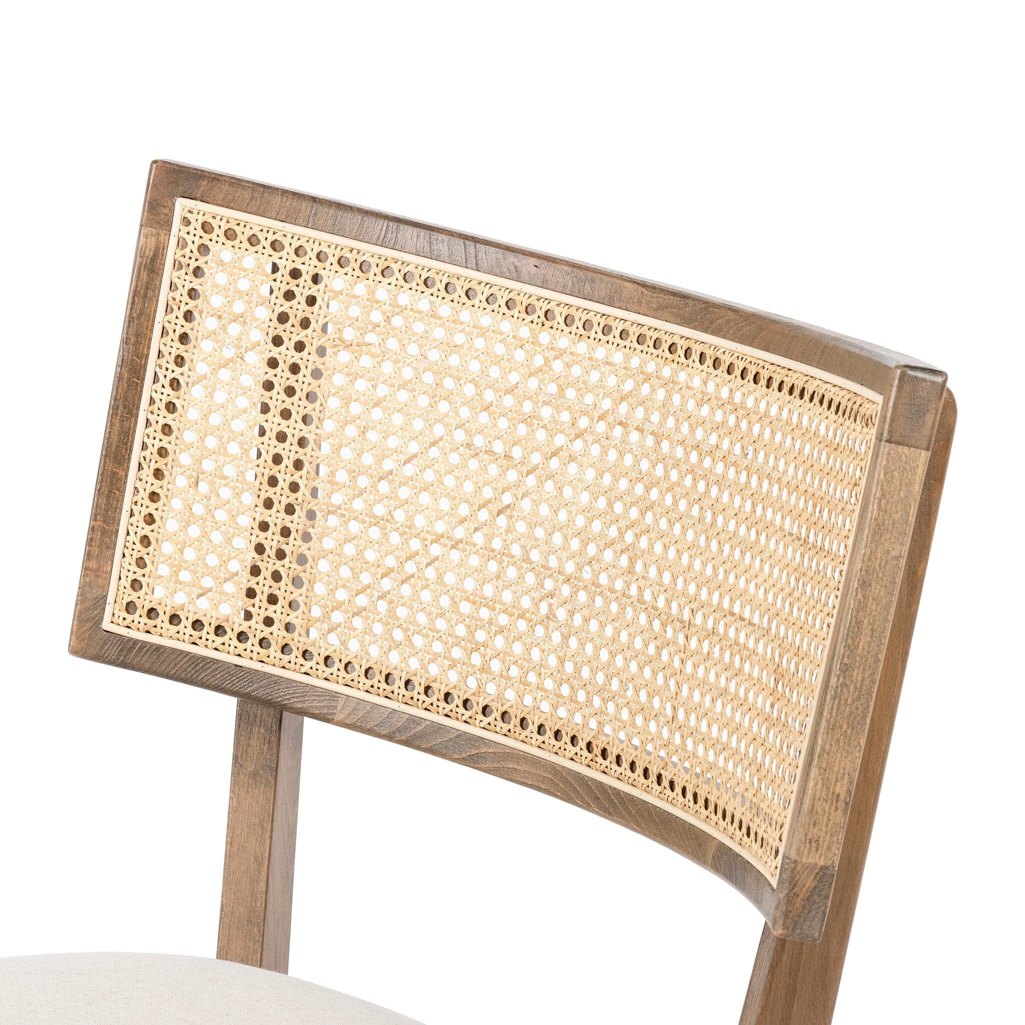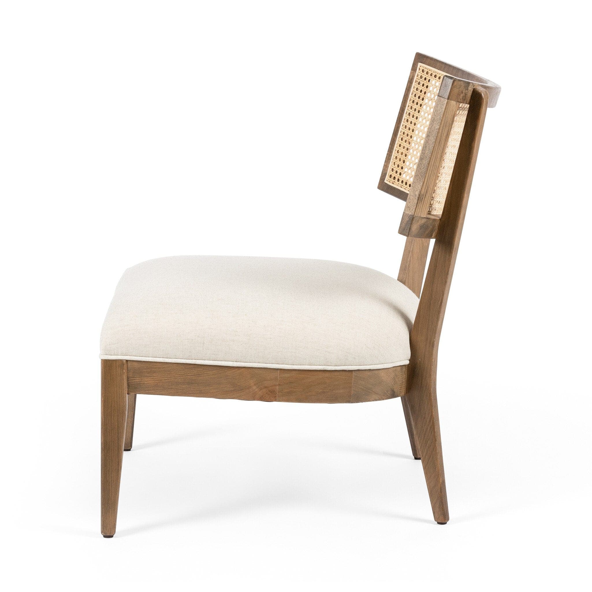 - Description: Mixed materials refresh retro dining style. Low-sitting solid beech frames a textural inlay of natural cane, for perfect contrast. Neutral high-performance linen-blend seating works modern sensibility into the mix. Performance fabrics are specially created to withstand spills, stains, high traffic and wear, ensuring long-term comfort and unmatched durability.