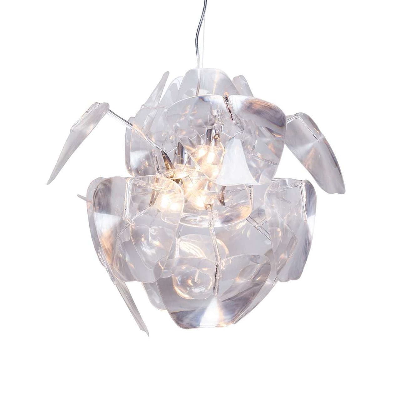 Named after the Hope Diamond, this spectacular modern chandelier is made up of dozens of thin acrylic leaves that act as prisms to refract the light. Lightweight, and not taking up much visual space this piece will amaze when turned on and transformed into a sparkly diamond in the air. The light from one standard 60 watt bulb will provide plenty of ambient lighting.