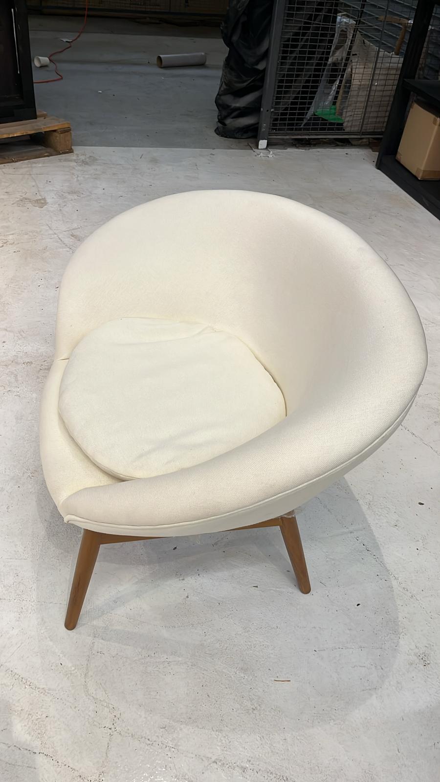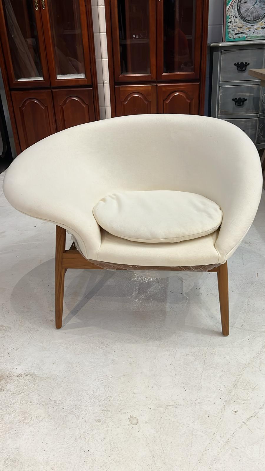 This chic chair will let you lounge in style. A teak wood frame supports the swooping seat with an elongated side perfect for relaxing. The fully upholstered seat and cushion ensure comfort while the neutral beige color allows this chair to work with almost any color palette. Available in left or right facing.