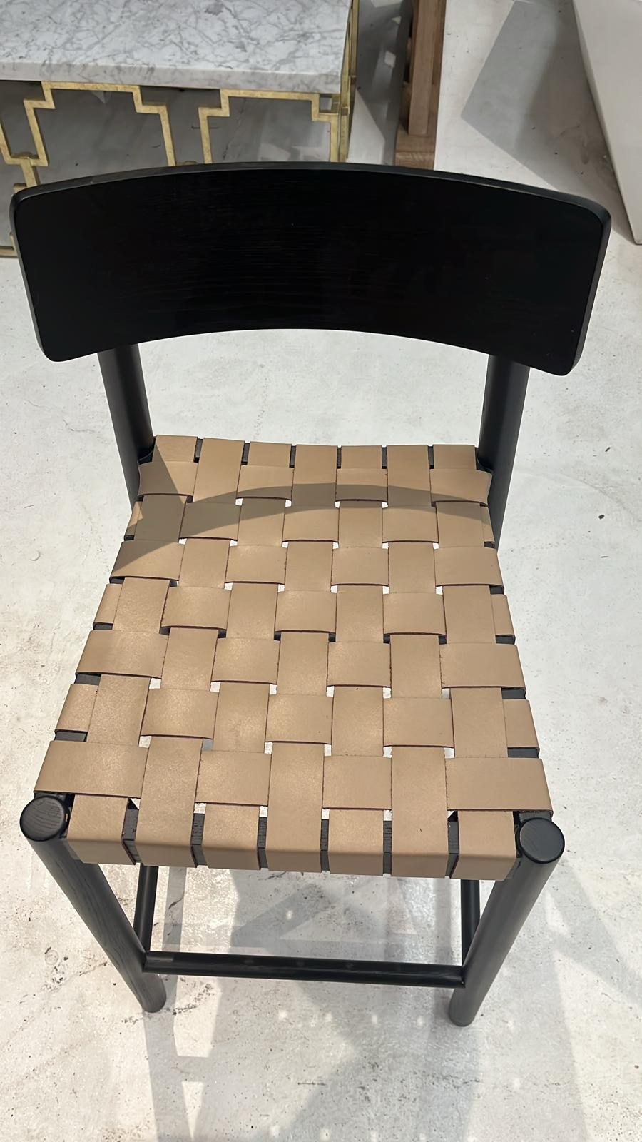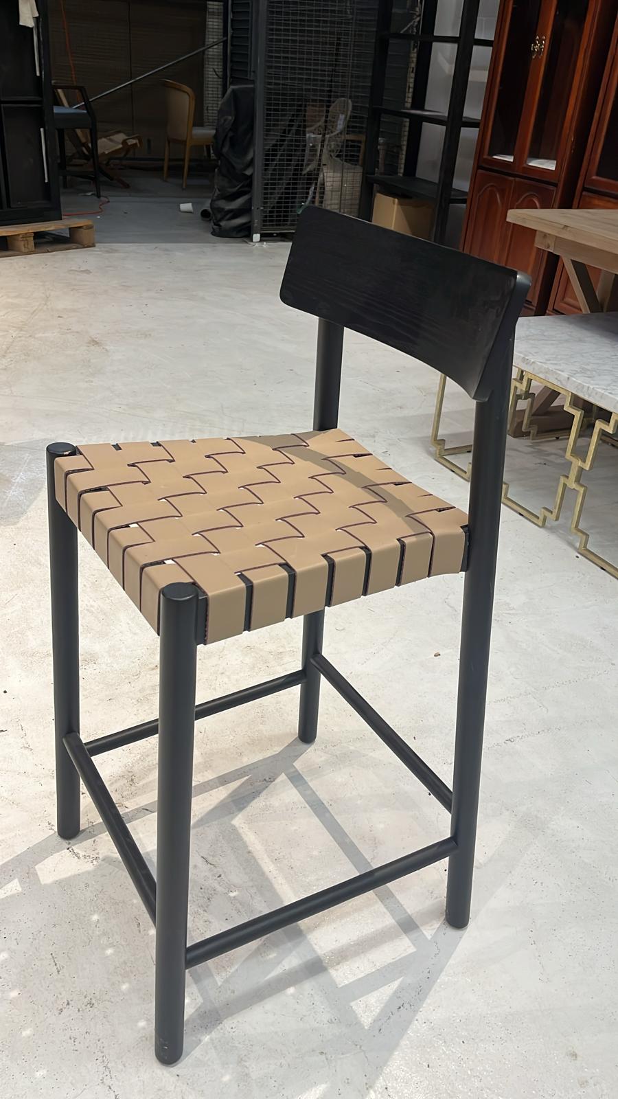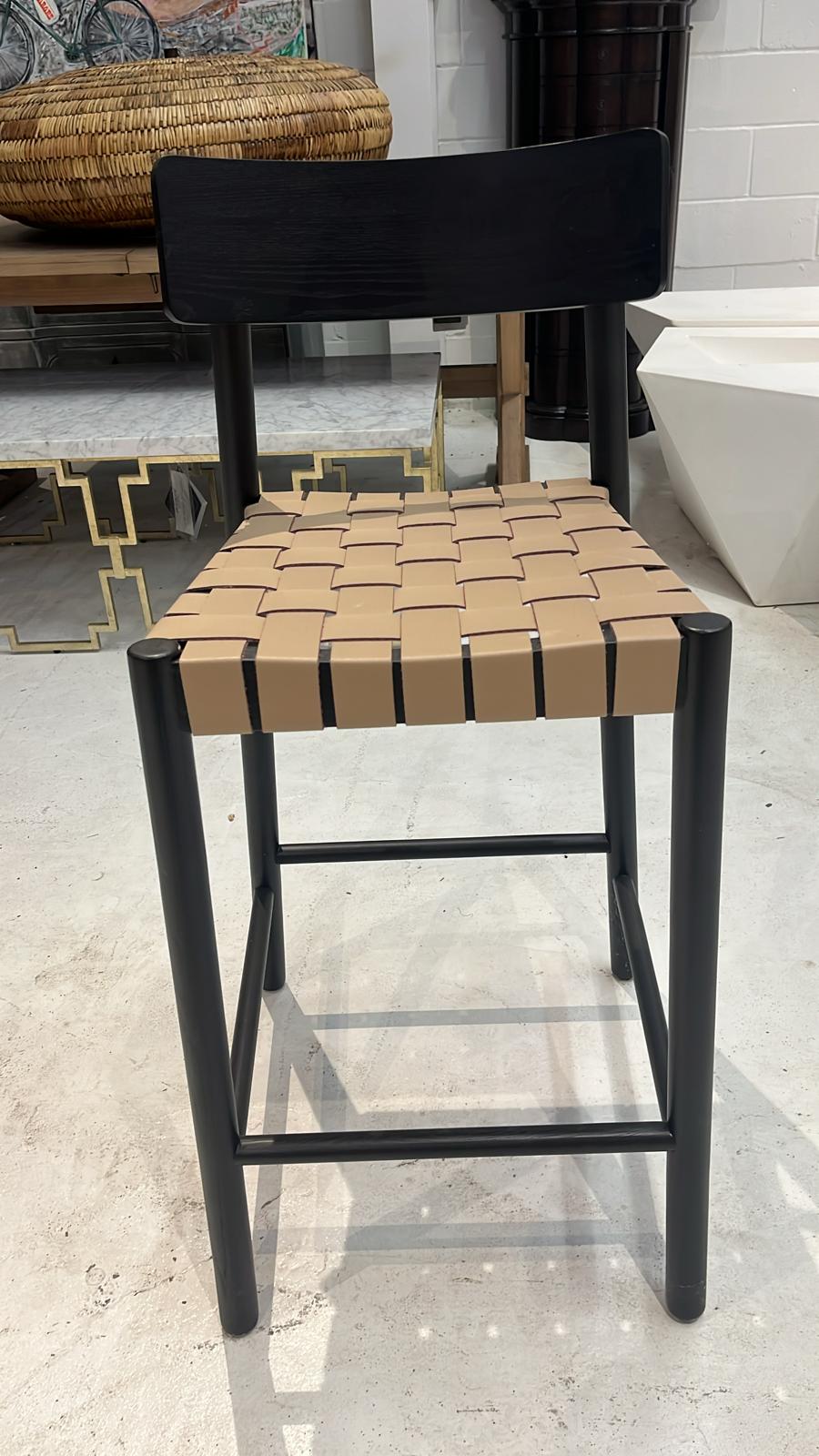- Description: Almond leather and black-finished ash fuse to craft a slim, stylish silhouette. A classic basketweave seat pattern complements the simple lines of this counter stool's streamlined frame.
