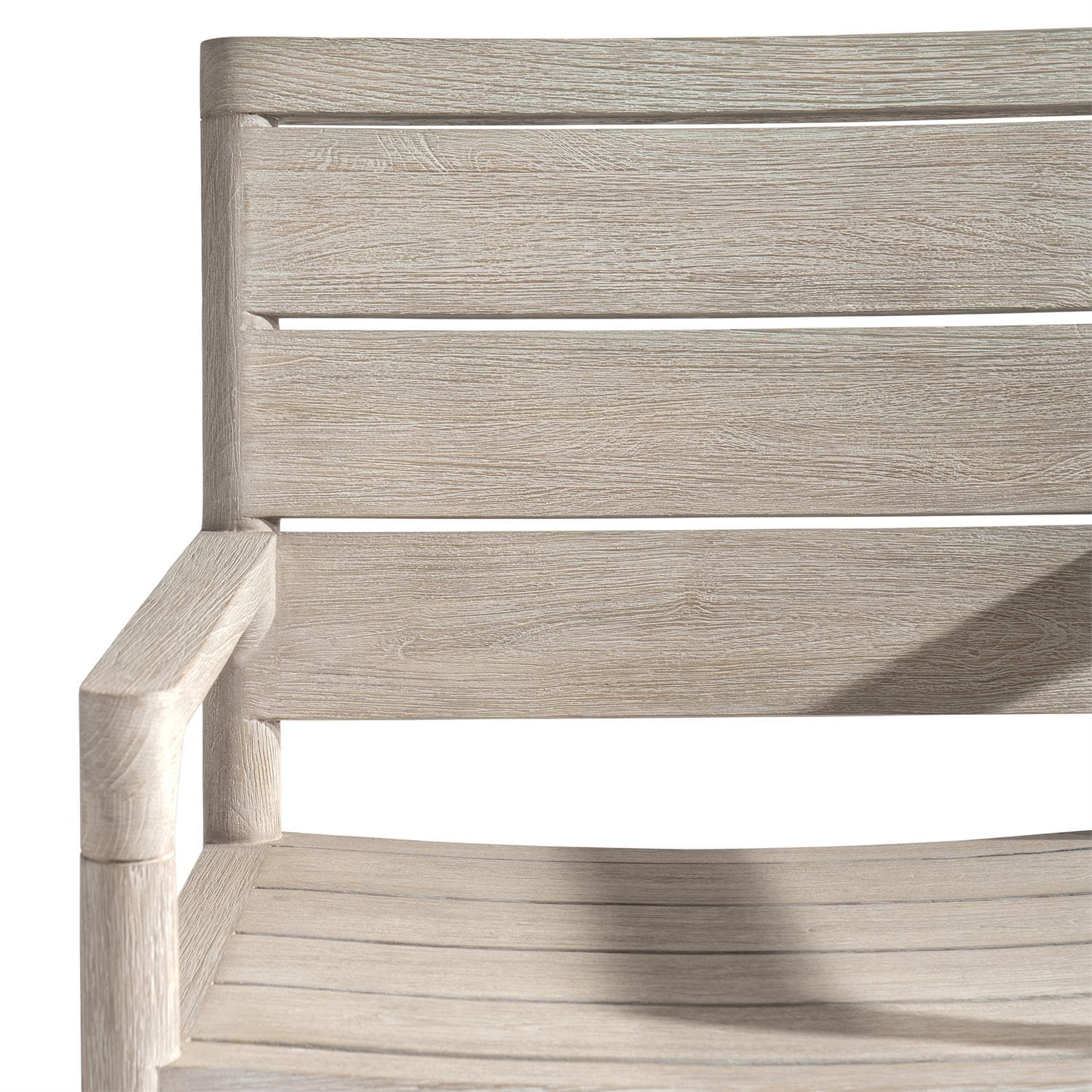 - Sea Oat finish on arm chair of solid teak with slatted back and seat.