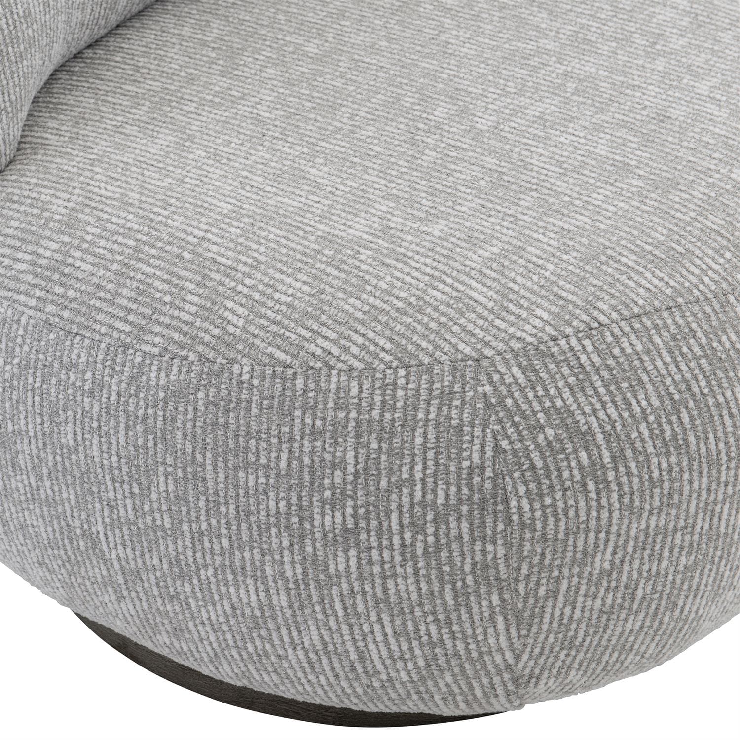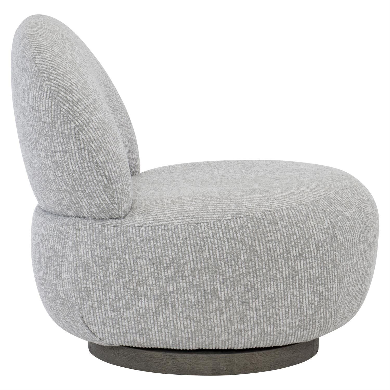 The plush armless Caicos swivel chair showcases a tightly upholstered seat and back crafted with generous curves. It's a high-design interior look that is designed for outdoor settings. A teak swivel base completes the look, offering a 360-degree turn radius.