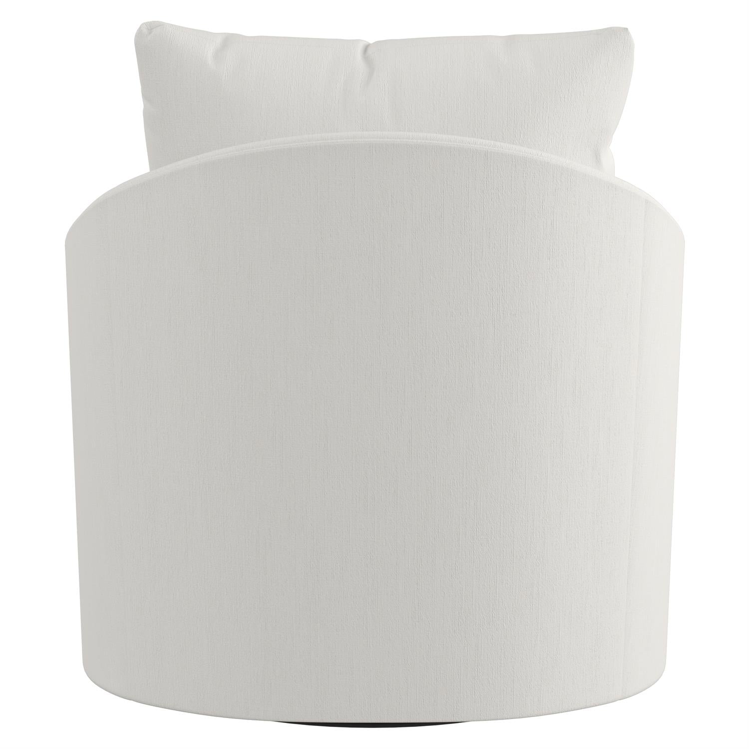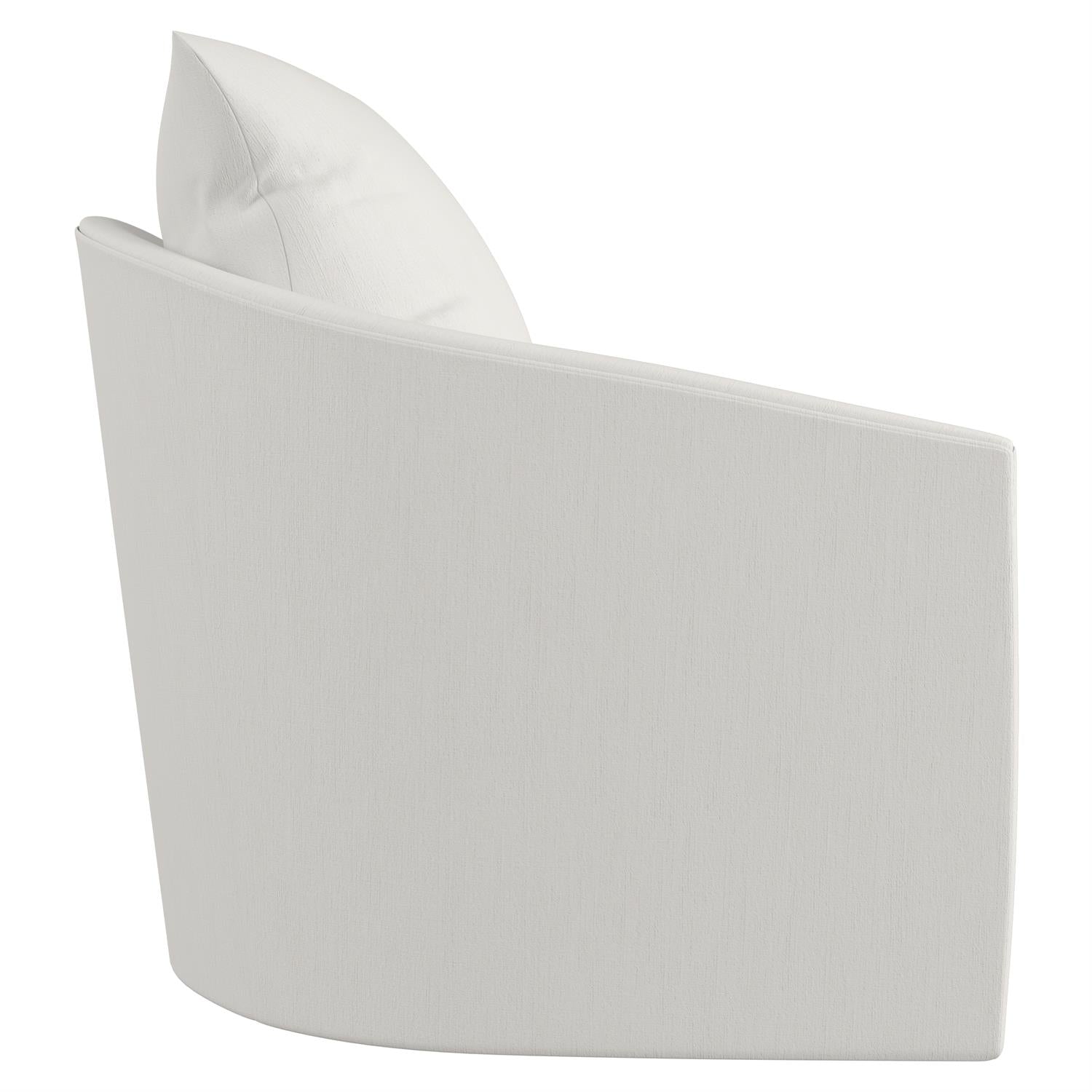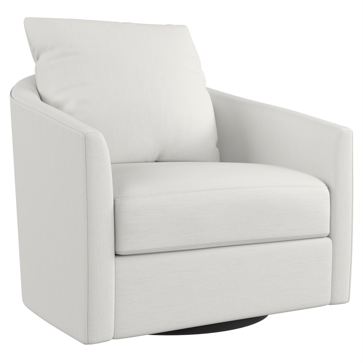 The Camden swivel chair offers added functionality to the traditional barrel chair. Movement comes from the smooth swivel base. And the comfort story is updated with a plush back pillow with a knife edge.