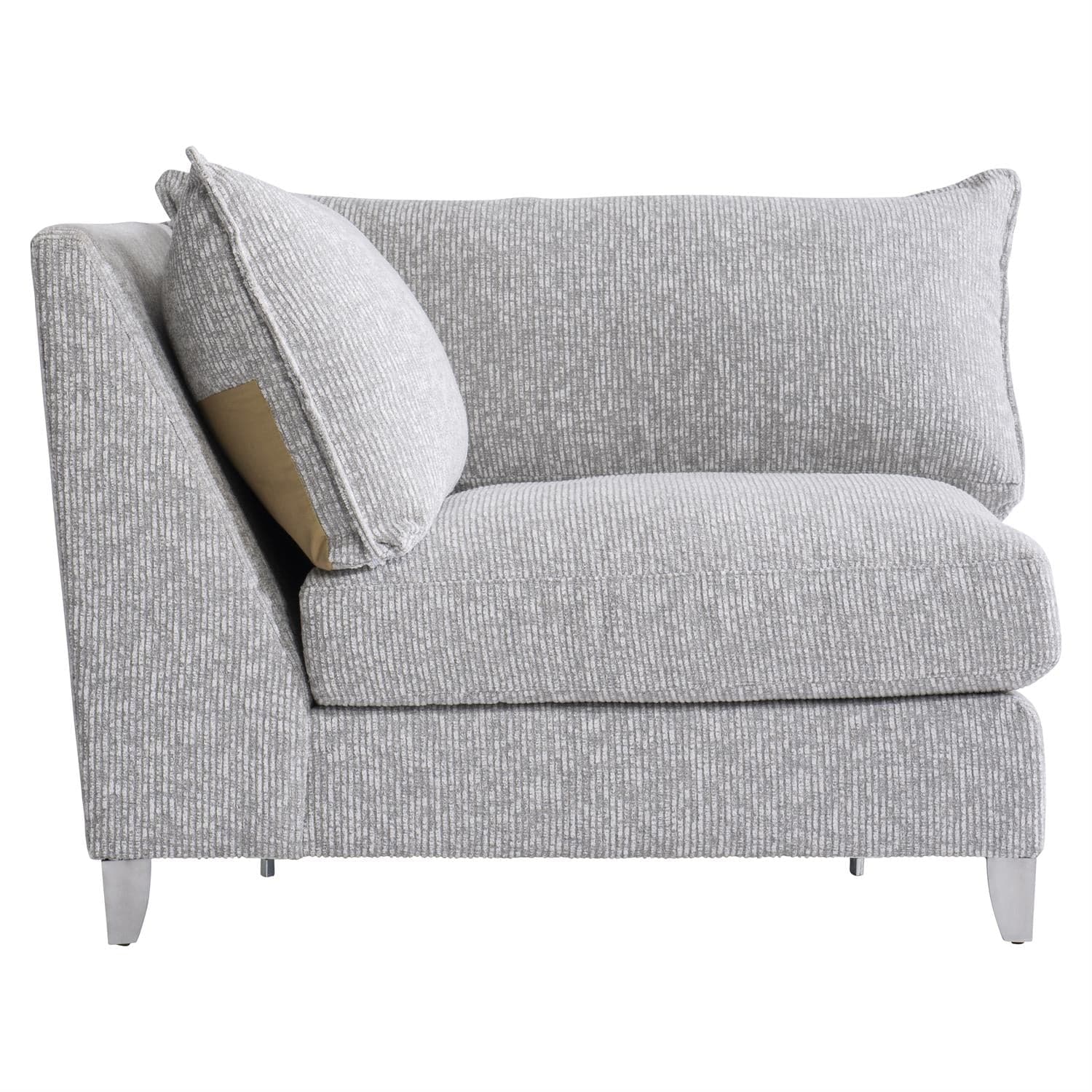 With a refined modern look and a nod to the California lifestyle, the Monterey corner chair features graceful curves, flanged edges and gently contoured aluminum legs. It can stand alone or serve as part of the Monterey outdoor sectional. Fully upholstered in all-weather fabric, it brings casual elegance to the contemporary outdoor living space.