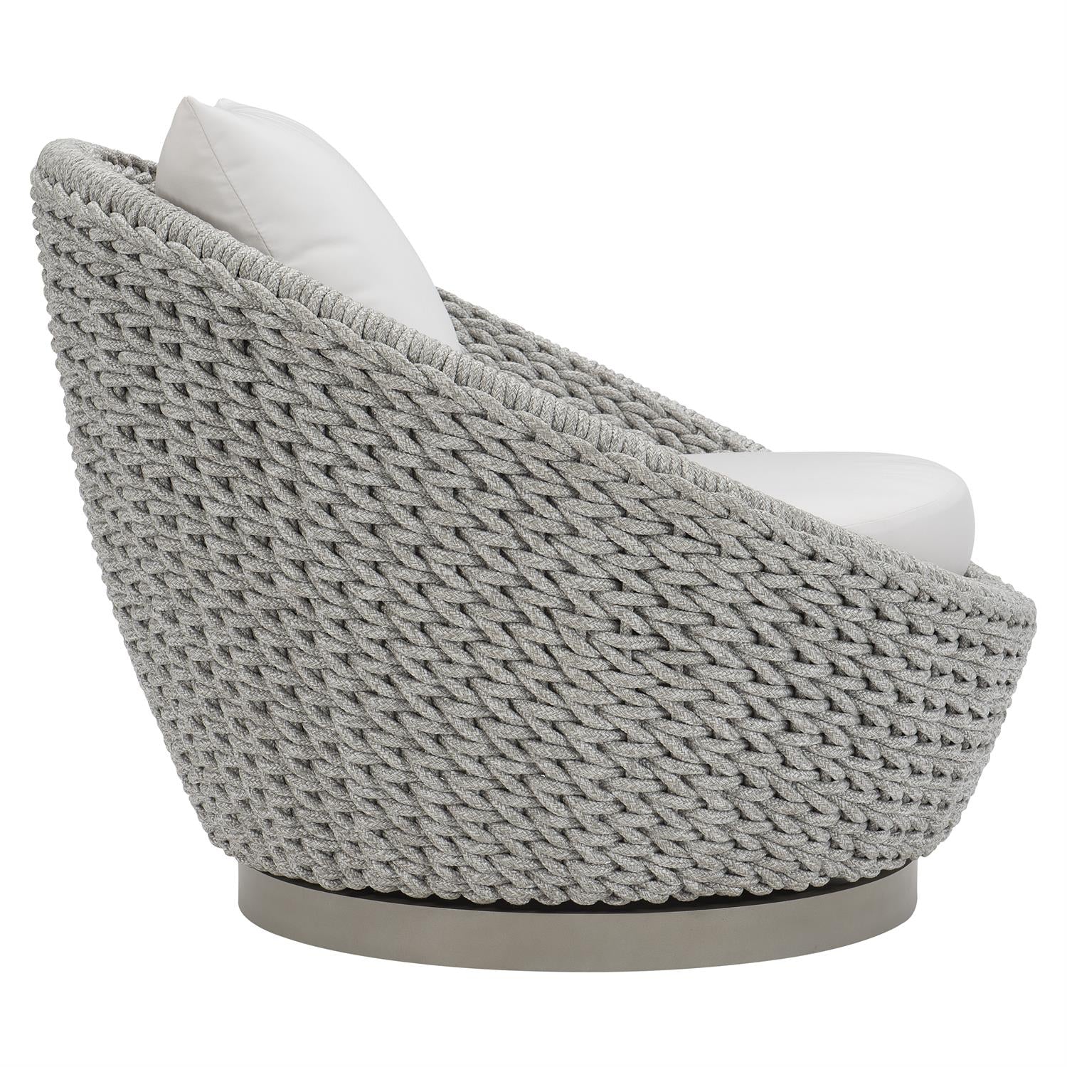 With its enticing shape and natural rope weave, this swivel chair takes outdoor seating to a new level of luxury and style. A modern spin on the classic papasan chair, the Savaii swivel chair offers texture and flow. Its round shape invites relaxation and softens the tone of any space. Round rope in a Marled Clay finish adds a tactile quality while creating a beautiful, natural look. With its organic aesthetic and inspired design, this all-weather chair delivers sophisticated style with a laid-back feel.