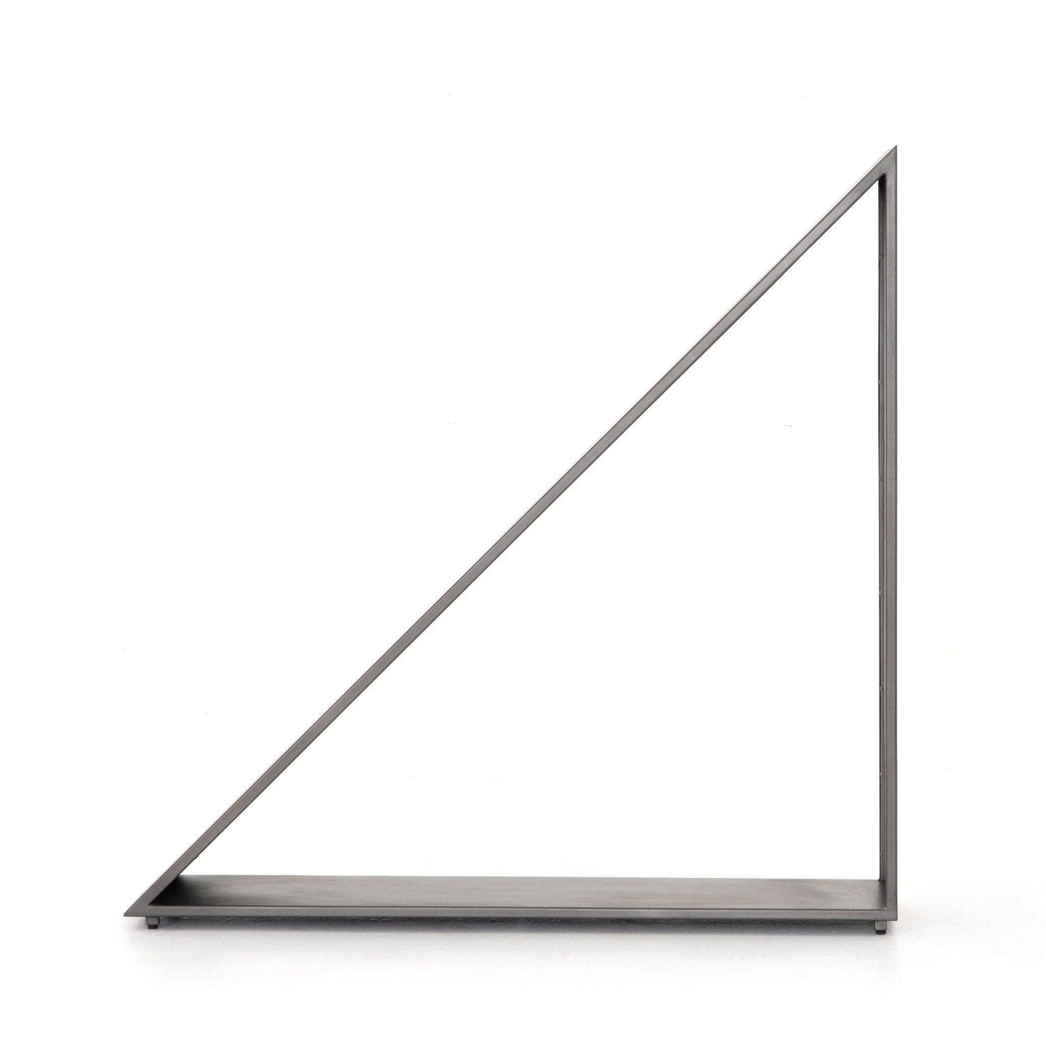 - Description: Store firewood in style. An large-scale open triangle of gunmetal-coated iron stands tall and sturdy, awaiting chopped wood for open display, indoors or out. Cover or store inside during inclement weather.