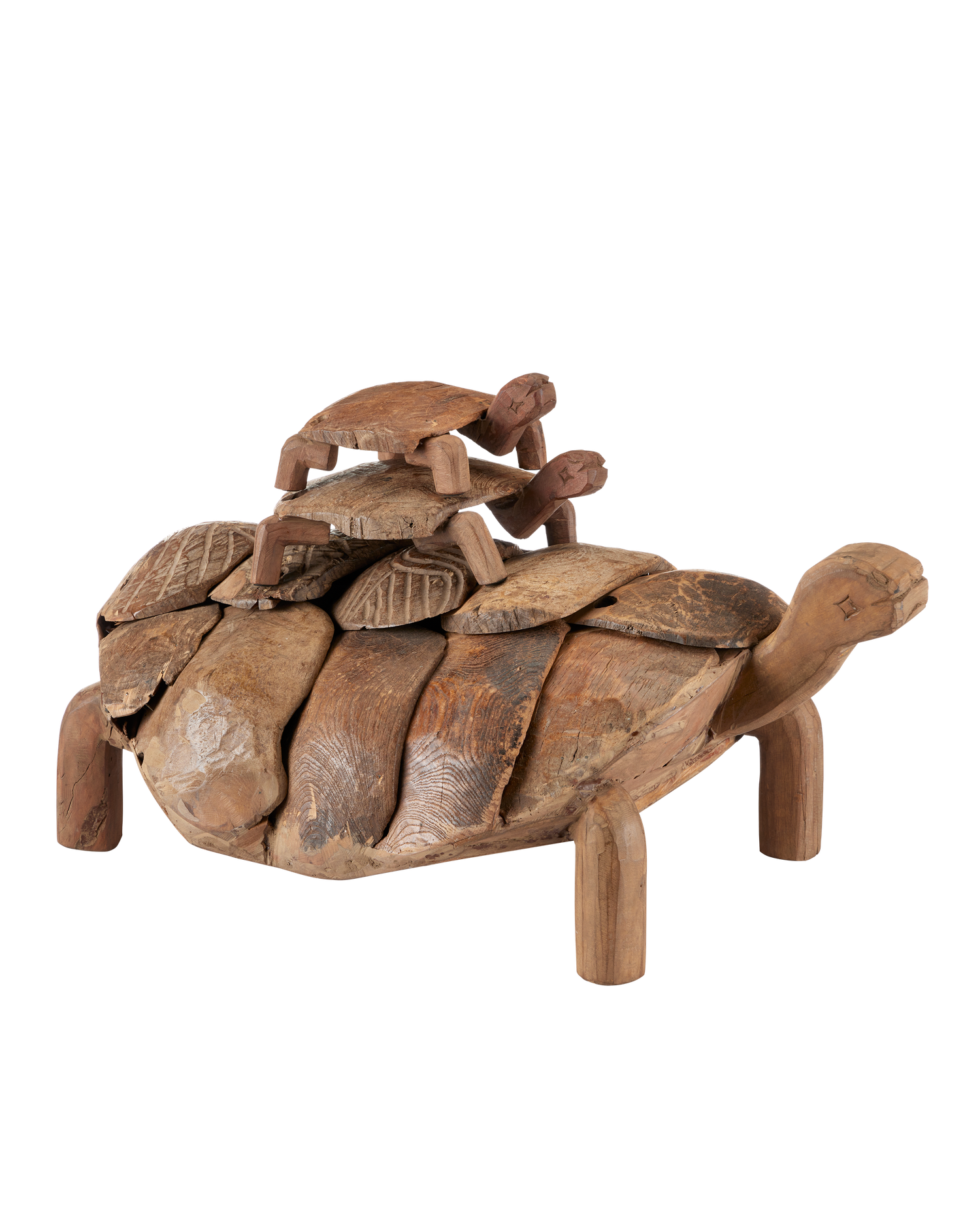 Description: The Turtle Set includes three sculptures made of reclaimed wood that make them look like antiques. The primitive feel of the pieced-together reptiles increases the sense of whimsy their composition reflects. The two babies hitching a ride with the parent tell a lively story that will make the composition the highlight of any vignette. Because the rustic pieces are made from recycled wood, each set will be unique.