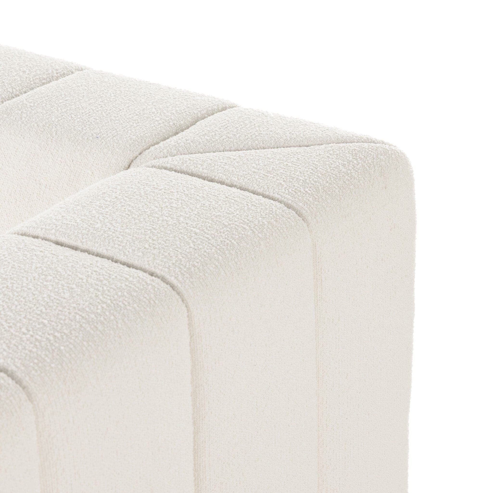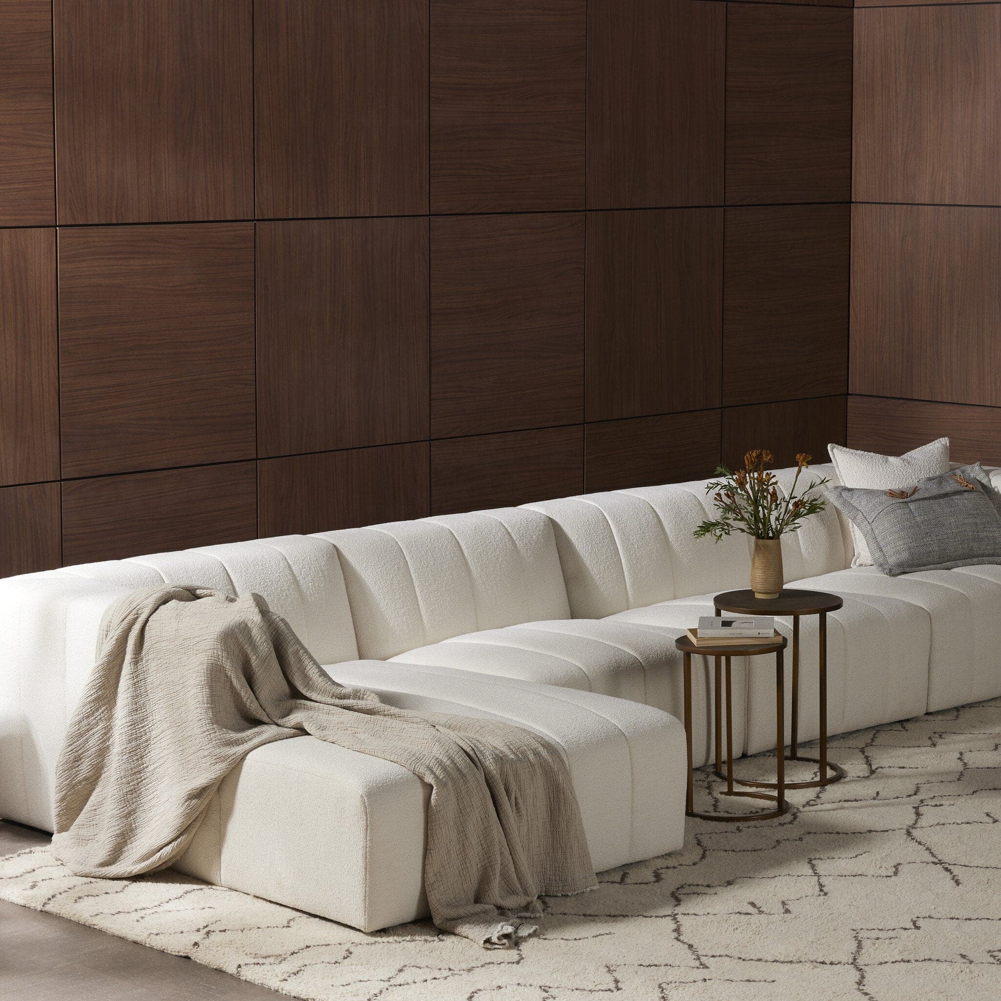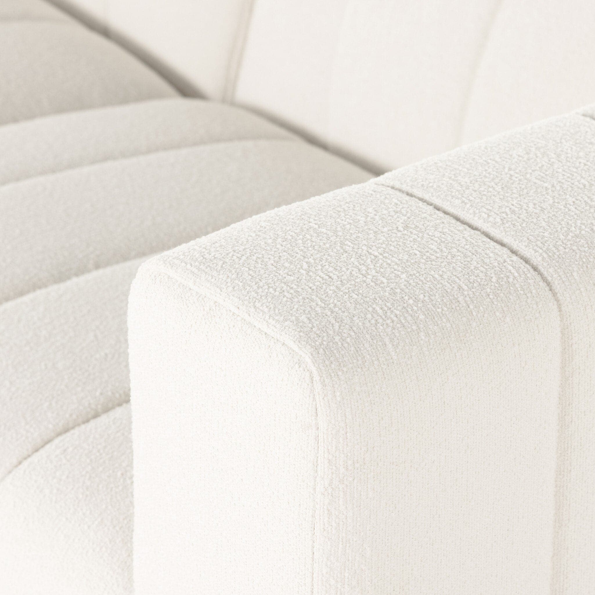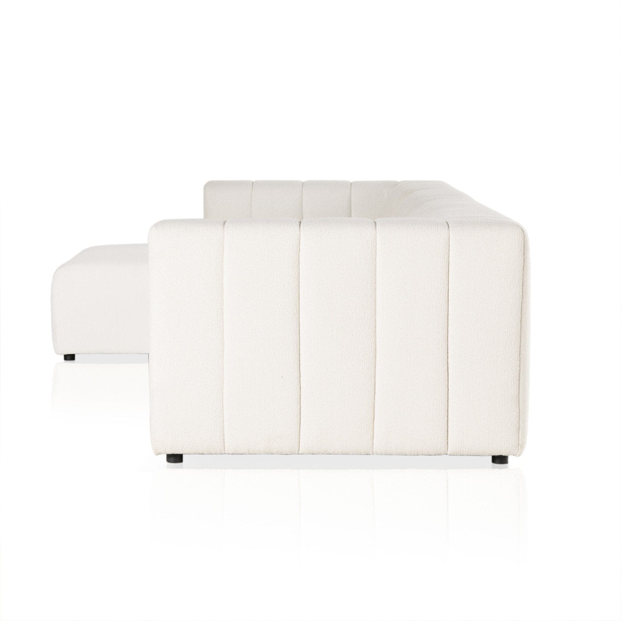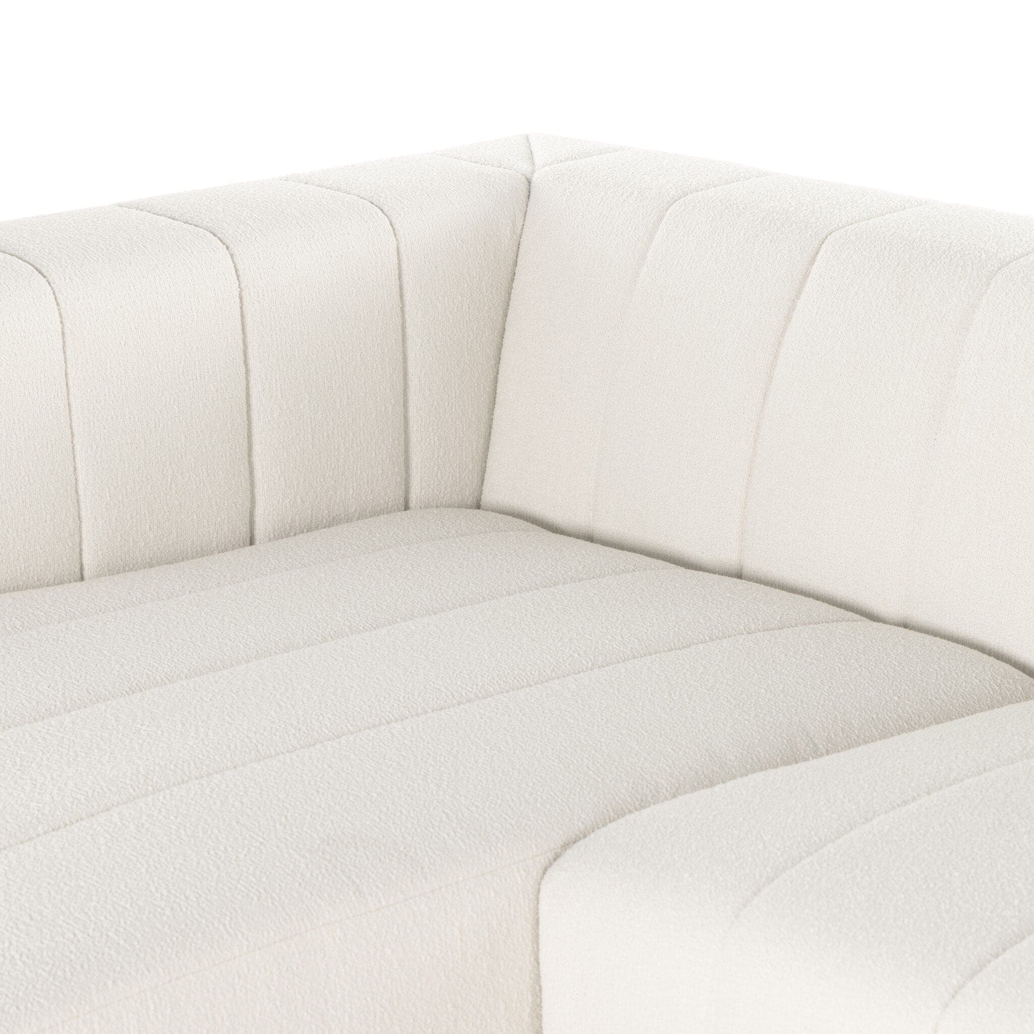 - Description: The sensible sectional meets modern Italian styling. Wide channeling and oversize arms offer a luxurious take on modular seating. Neutral sandstone-colored covering awes in any space. Left arm facing chaise to sectional.