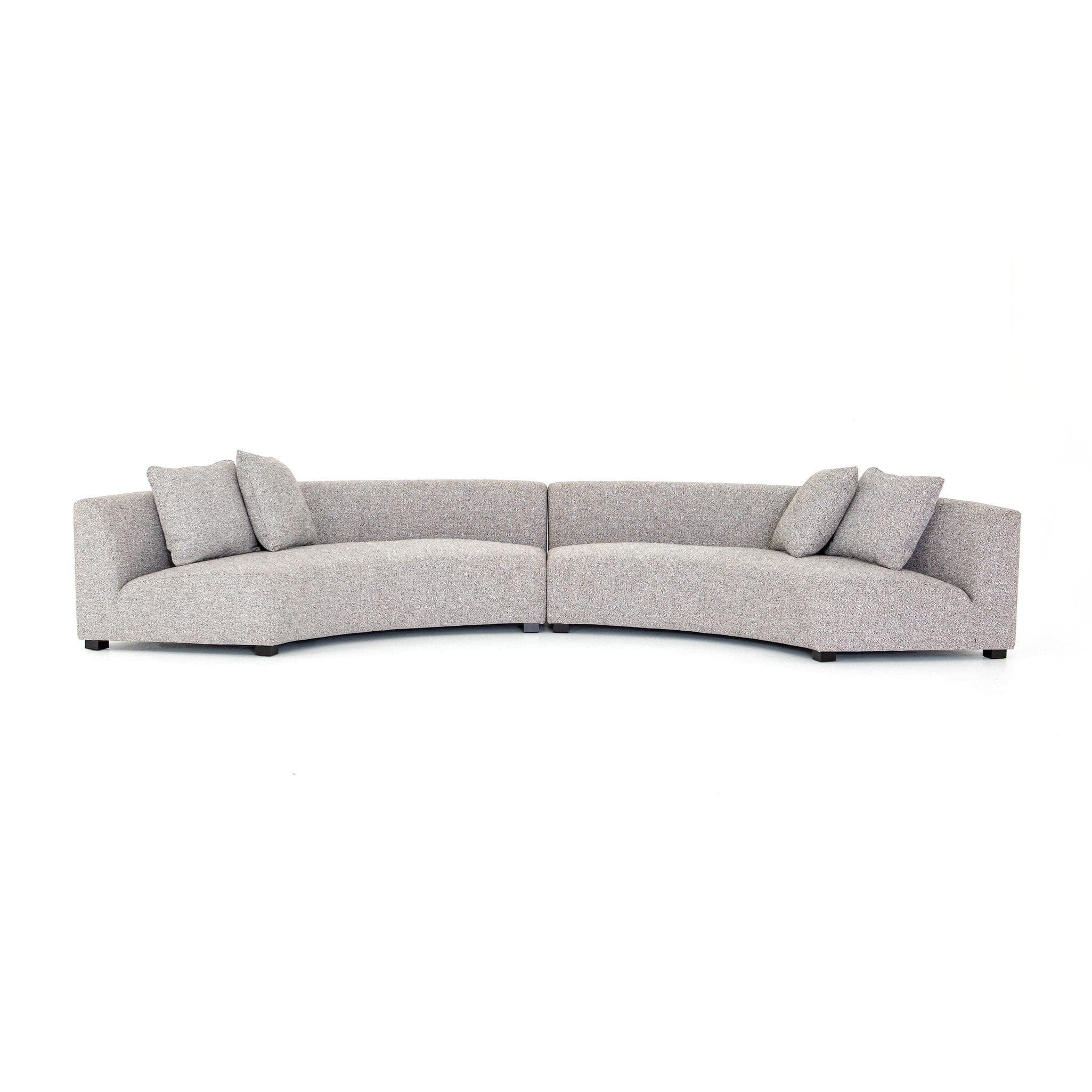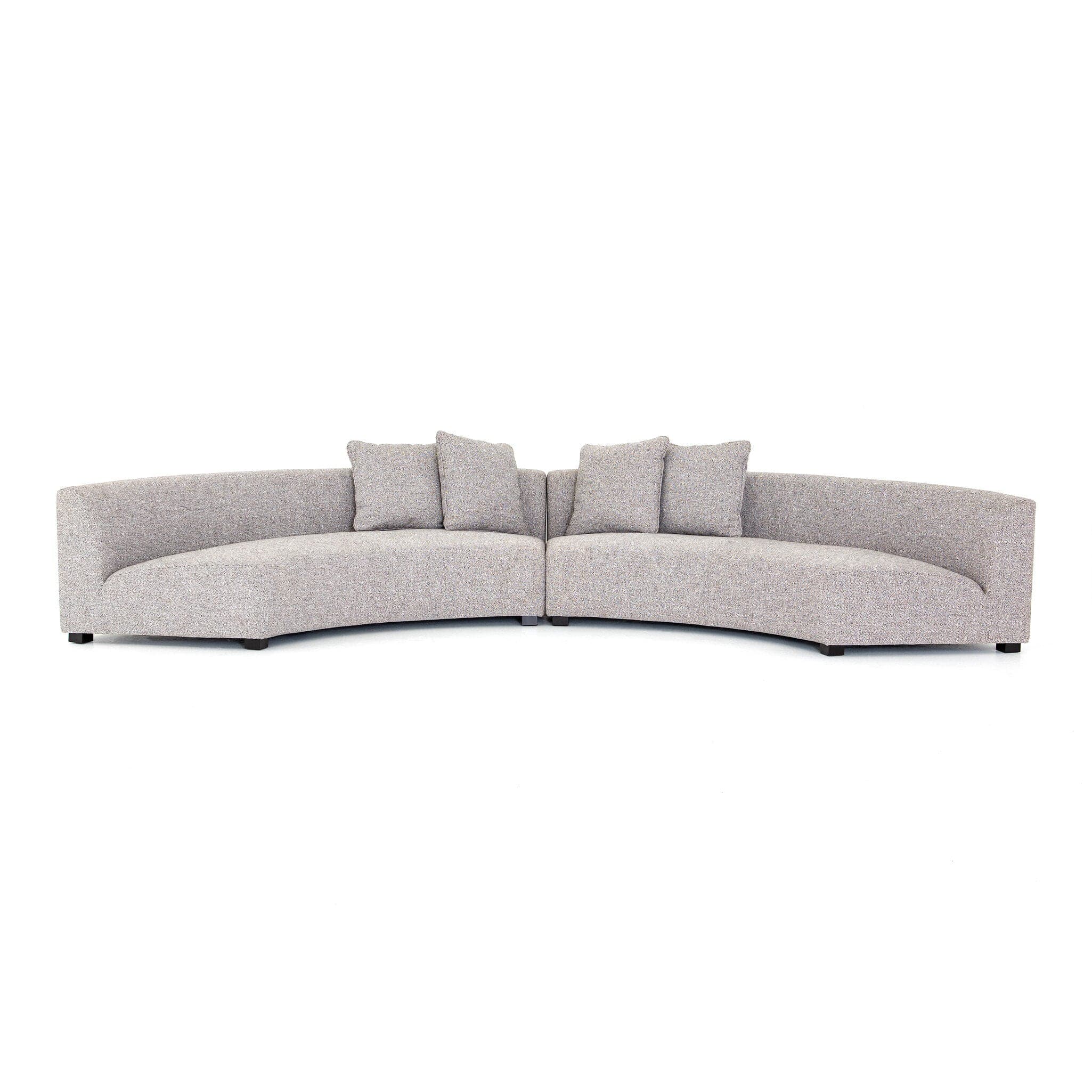 - Description: Eye-catching at every curve. A sophisticated take on sleek Italian design, grey linen-blend upholstery fashions an elongated crescent, bringing shapely effect to the modular sectional. Pieces can be positioned to form a large or small crescent, granting options to suit a space. Large crescent: 176.38"W x 66.5"S x 29"H. Small crescent: 150"W x 82.75"D x 29"H.