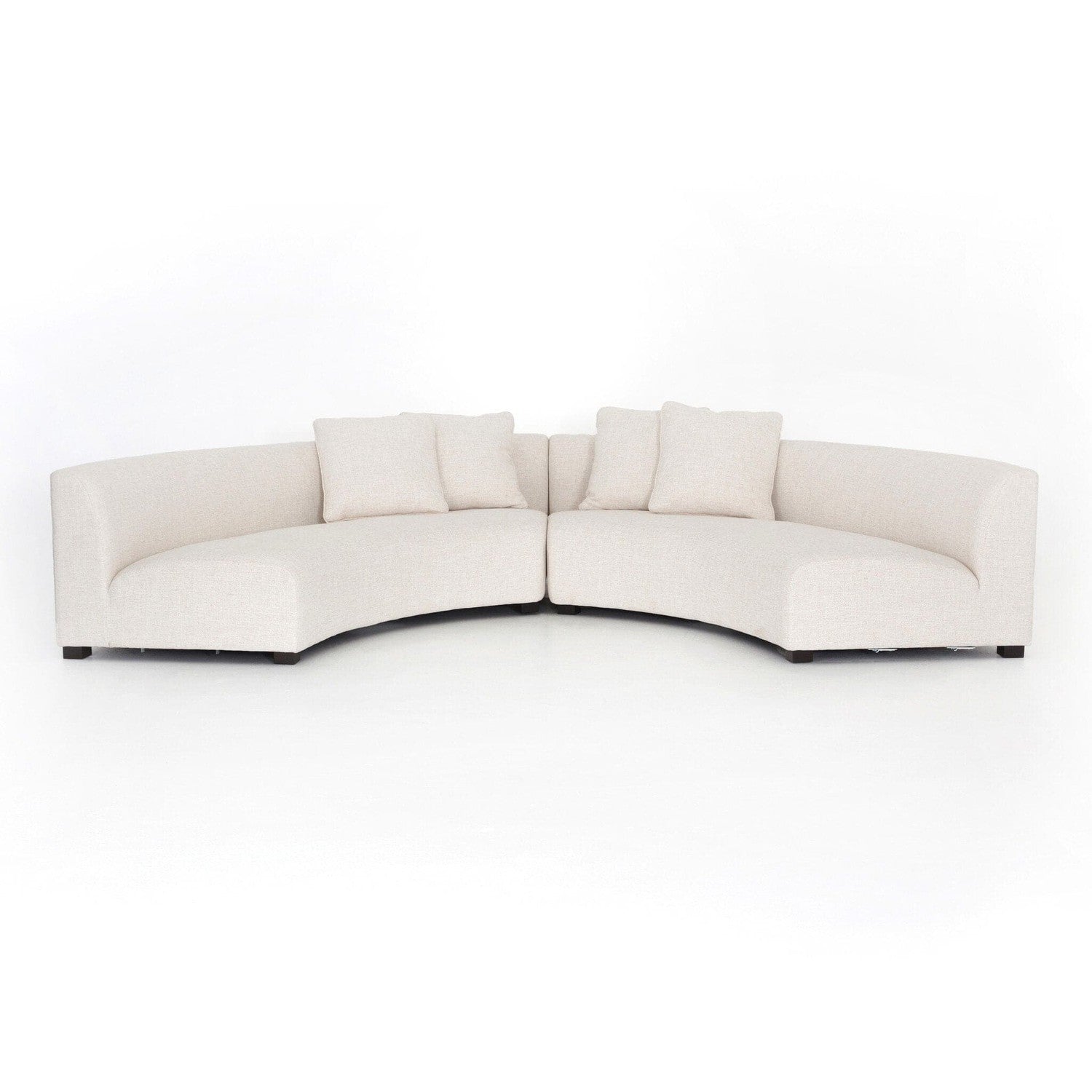 - Description: Eye-catching at every curve. A sophisticated take on sleek Italian design, cream linen-blend upholstery fashions an elongated crescent, bringing shapely effect to the modular sectional. Pieces can be positioned to form a large or small crescent, granting options to suit a space. Large crescent: 176.38"W x 66.5"S x 29"H. Small crescent: 150"W x 82.75"D x 29"H.