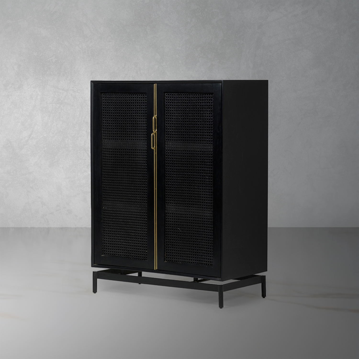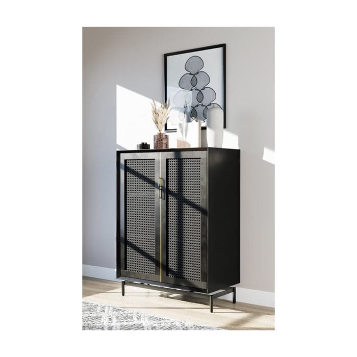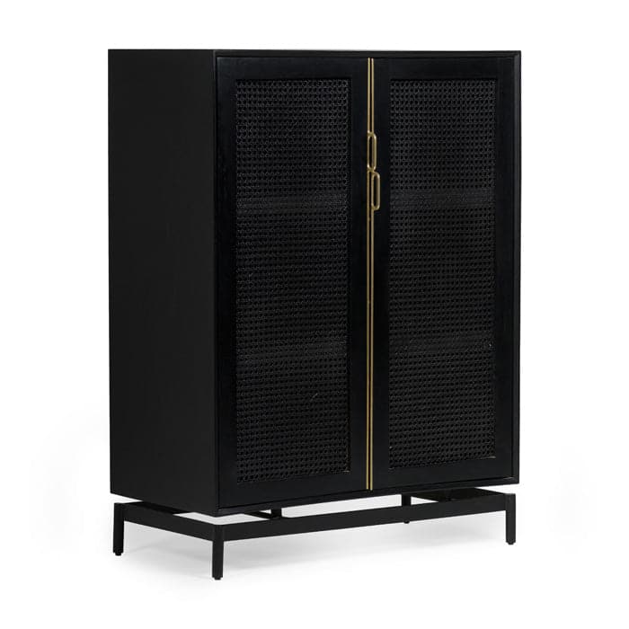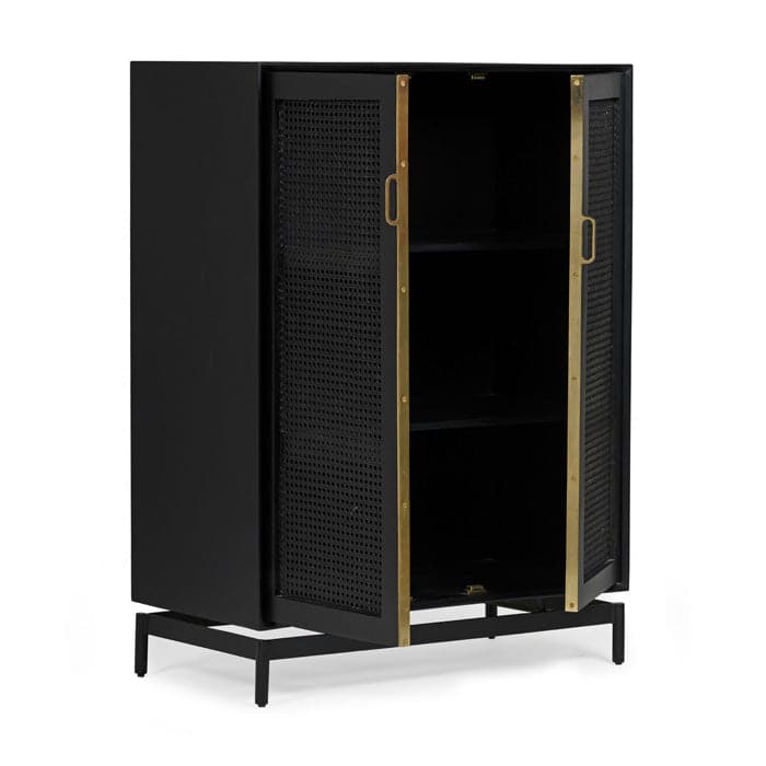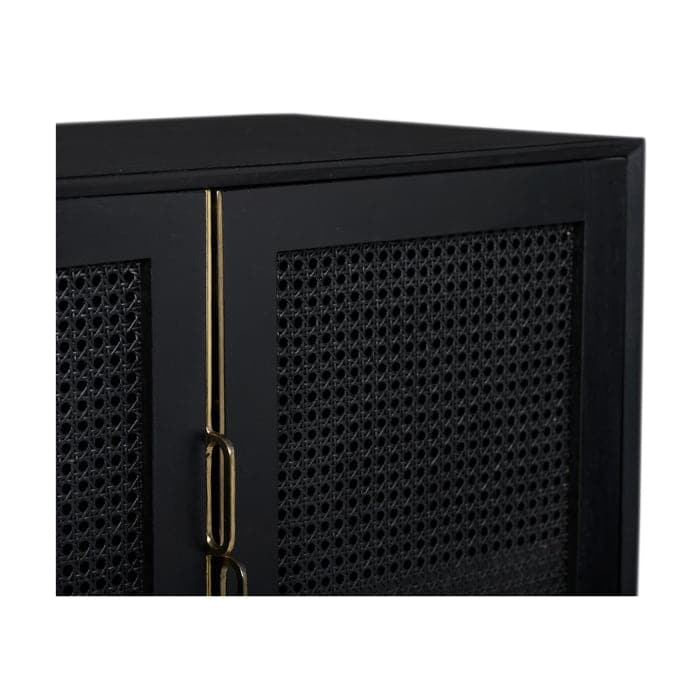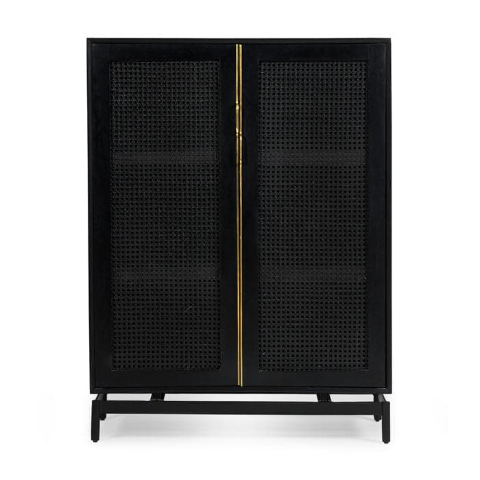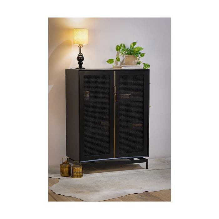 Our Louisiana small cabinet features woven cane door fronts, punctuated by full length, brass pull hardware. 2 hinged doors conceal an ample storage compartment with 2 shelves.