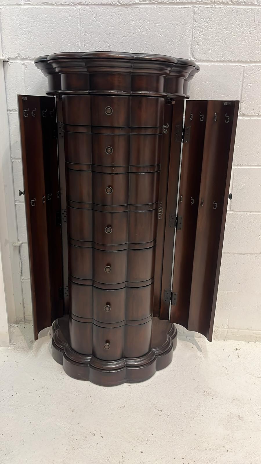 With lots of style and grace the Shaped Jewelry Armoire-Cherry offers both beauty and storage to your room.
