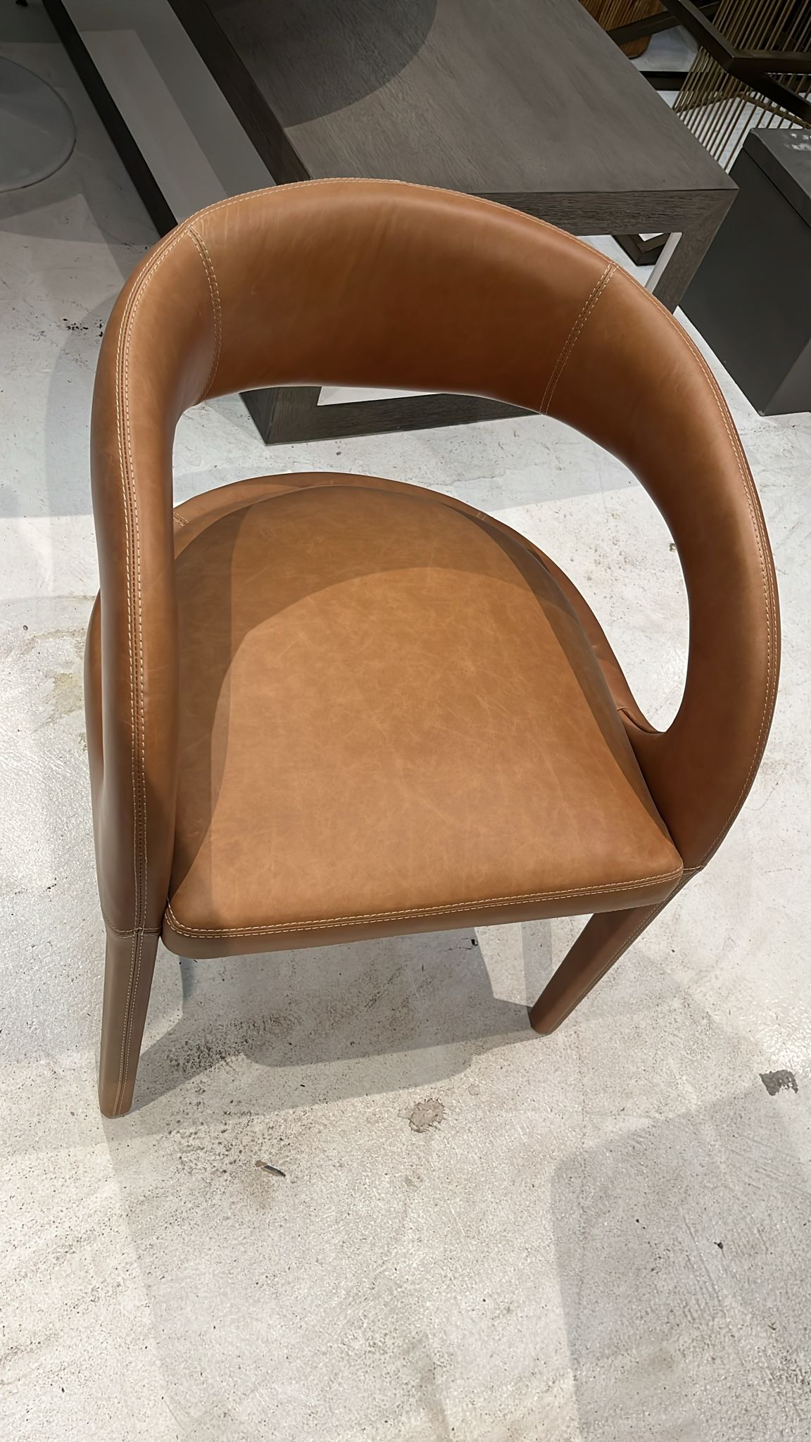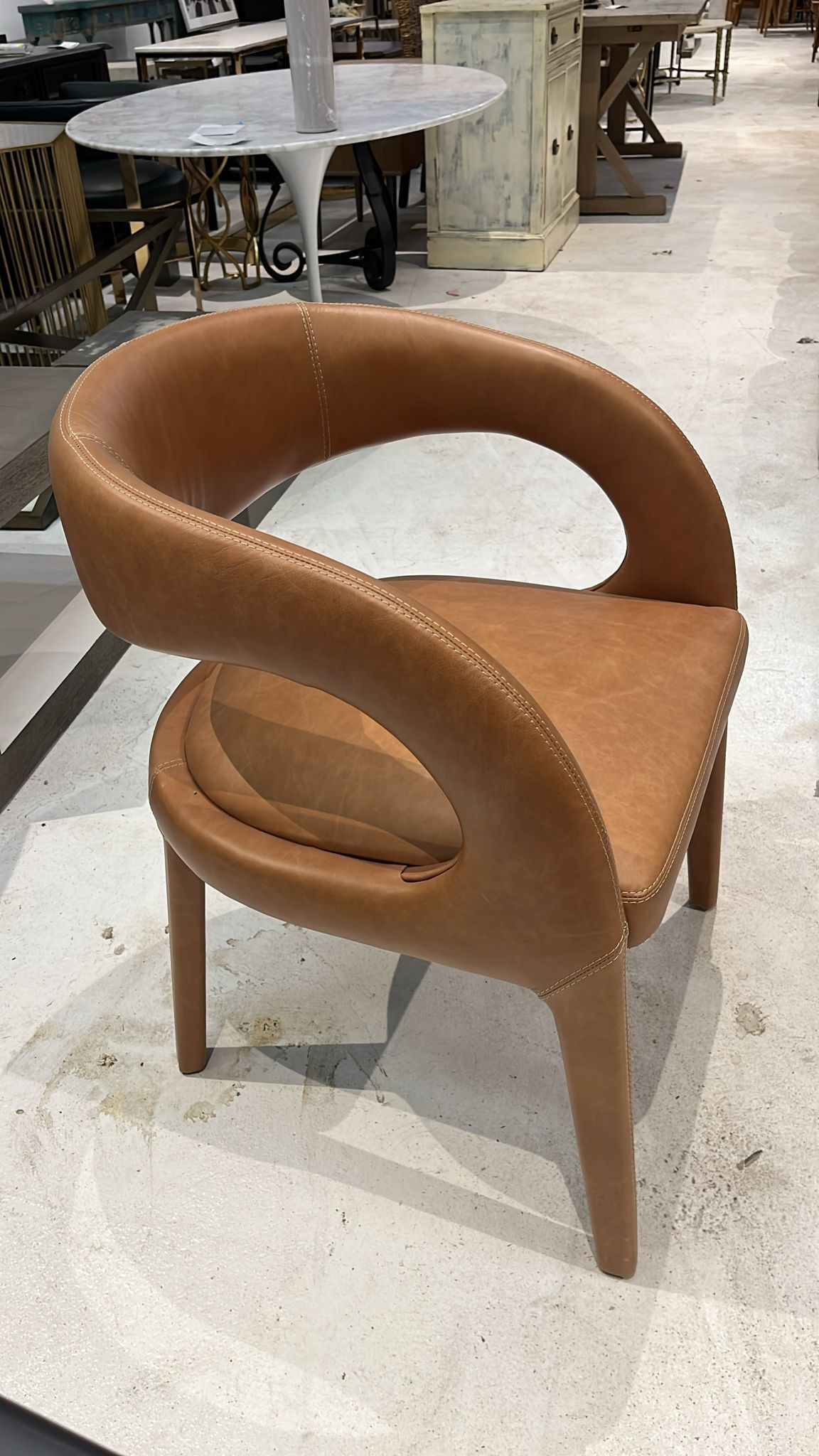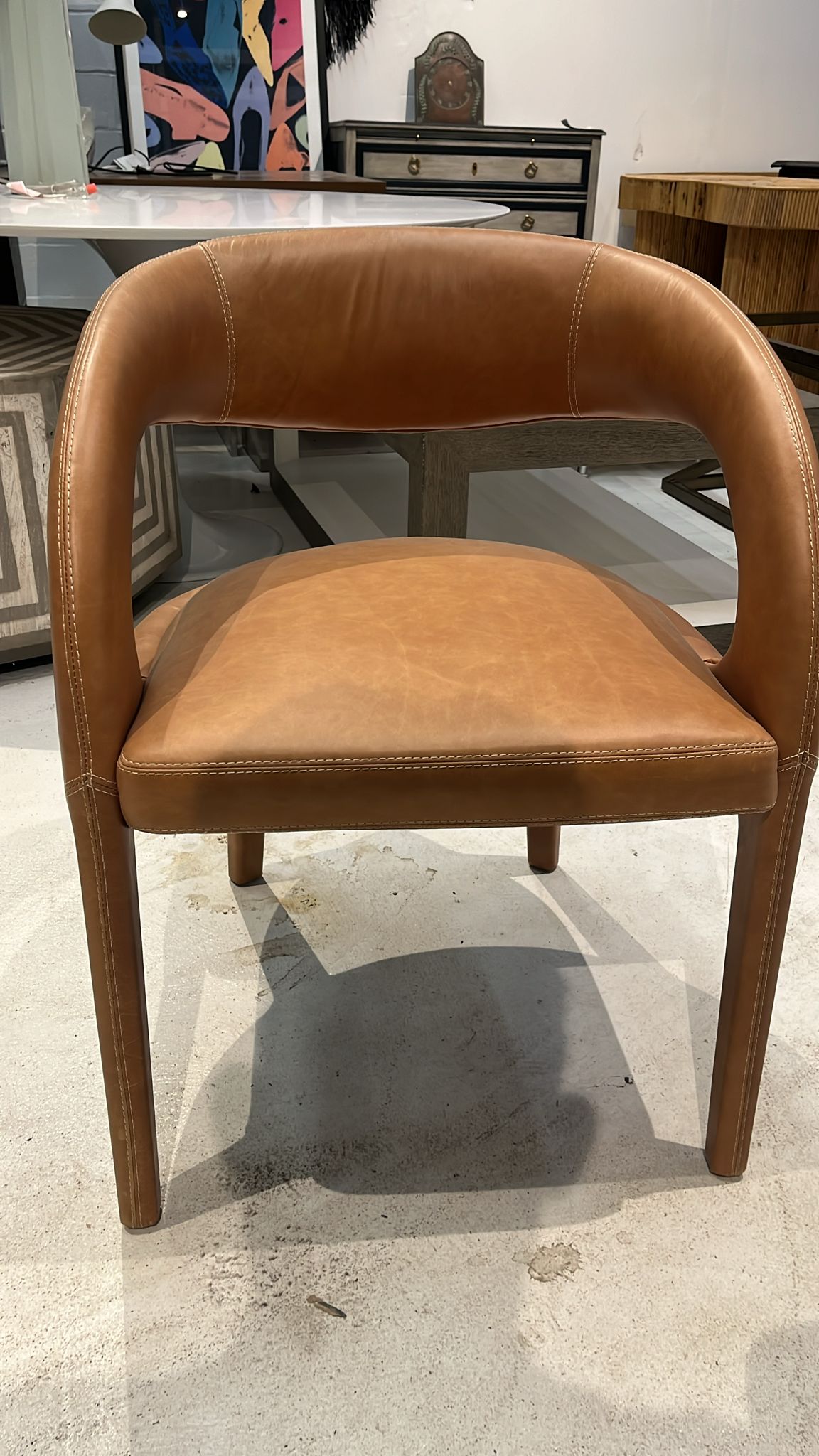 Description: Strike a pose. Well curved and finely sculpted, butterscotch-colored top-grain leather exclusive to Four Hands makes for a unique and shapely addition to the modern dining room.