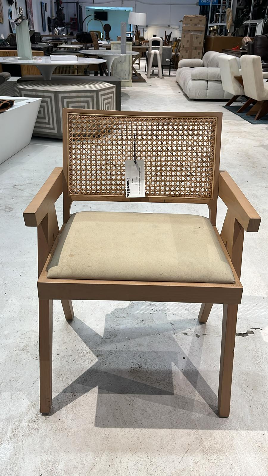 Pierre Jeanneret Dining Armchair with Seat Pad - Whitewashed - Open Box
