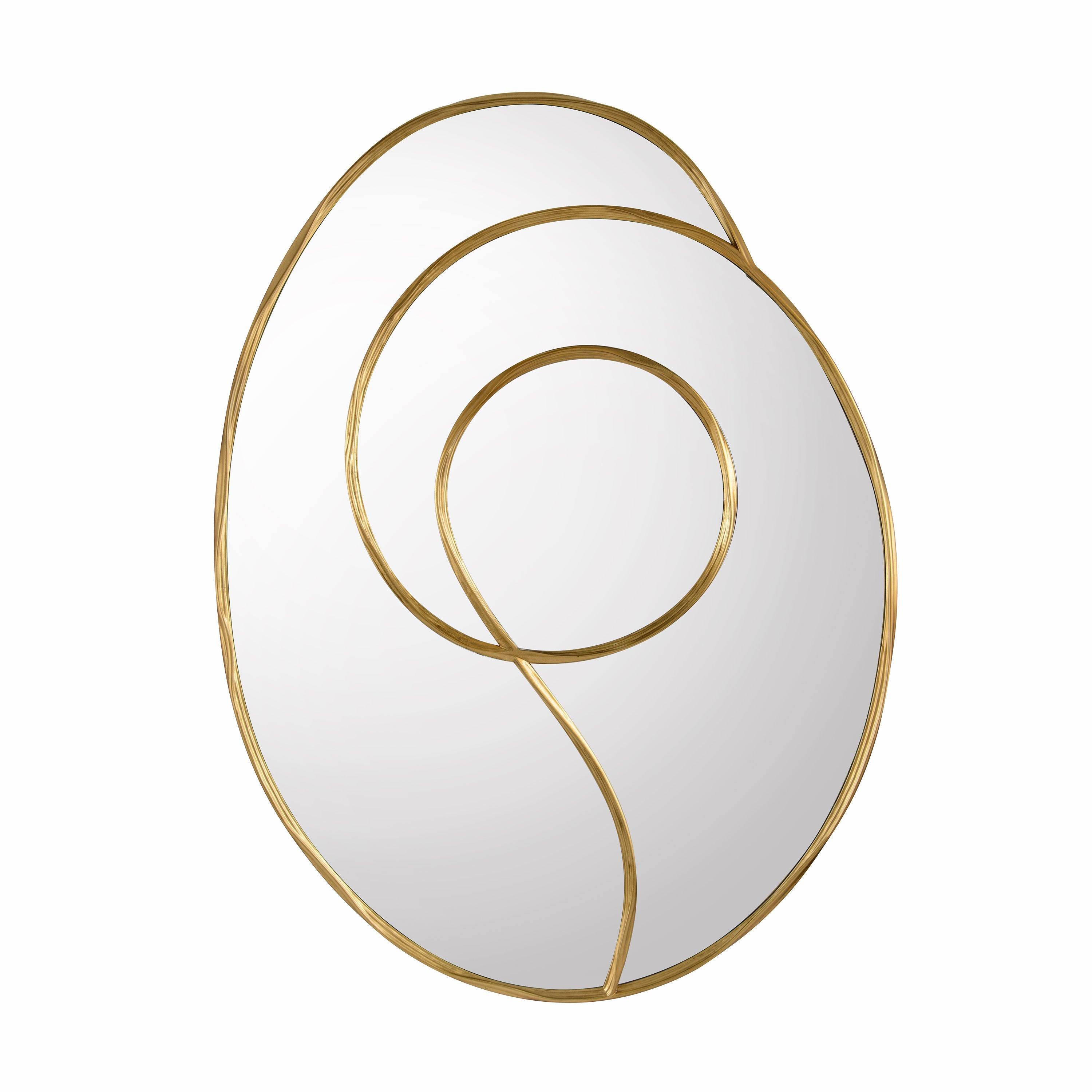 Description: With a steady hand, the artisans of John-Richard beautifully capture the artform of script writing, a delicate craft that celebrates the human element through organic flourishes and alluring asymmetry. The Flourish Mirror is crafted from beech wood frame with a luxurious Gold Coast finish, then shaped into overlapping curves to infuse an interior space with both motion and texture.